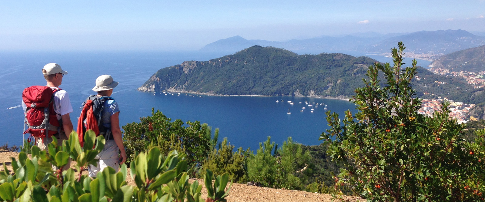 Vi tar tåget till Levanto och vi startar vår vandring i den historiska delen av byn. Vi vandrar längs strandpromenaden och vi fortsätter sedan uppför genom ett område med villor, trädgårdar och olivlundar. Häruppe får vi en härlig utsikt över havet. Mestadels har vi utsikt över havet under dagens vandring men vi passerar också genom skog med stenek och inslag av medelhavsmacchia med myrten, trädljung och Aleppotall. En del trappor under vandringen, som brukligt när man vandrar i Cinque Terre. Vi når dagens högsta punkt Cresta St Antonio (325 möh) med otrolig utsikt över det liguriska havet. Här äter vi vår medhavda picknick medan vi njuter av utsikten. Nu bär det nedför mot Punta Mesco och vi får ett panorama över hela Cinque Terre ända till ön Tino i syd. Här finner vi också ruinerna av St Antonio kyrkan - från XIII seklet och en gammal fyr. Strax innan vi når Monterosso, dagens mål, passerar vi Statua del Gigante, en 14 meter hög staty från 1910 föreställande Neptunus. Eventuellt ges lite tid i Monterosso innan vi tar tåget tillbaka.