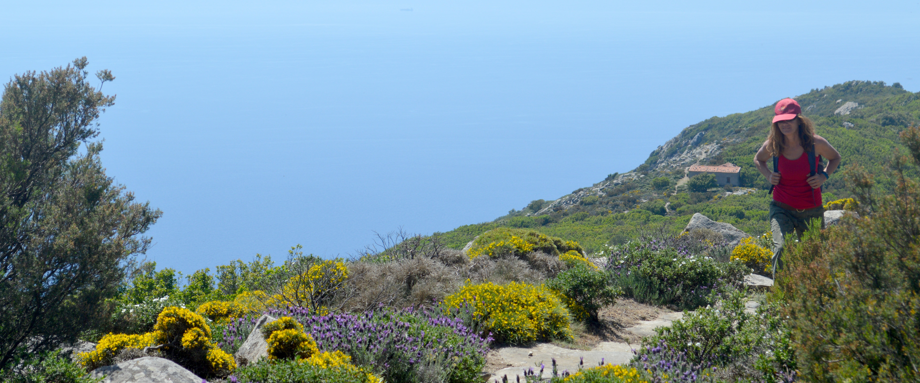 Vi startar i den lilla bergsbyn Poggio och vandrar uppför Monte Capannes sluttningar upp mot toppen, vilket tar drygt två timmar, lite beroende på gruppen. De steniga slingrande stigarna för oss genom skuggigare partier med skog men bjuder också på strålande vackra vyer under vår vandring. Stigen lutar kraftigt uppför men väl uppe smakar den medhavda matsäcken extra gott och vi belönas med en fantastisk utsikt på toppen. Här har man en obeskrivlig 360 graders vy över hela den 224 km² stora ön och med lite tur ser vi en klar dag Napoleons Korsika.