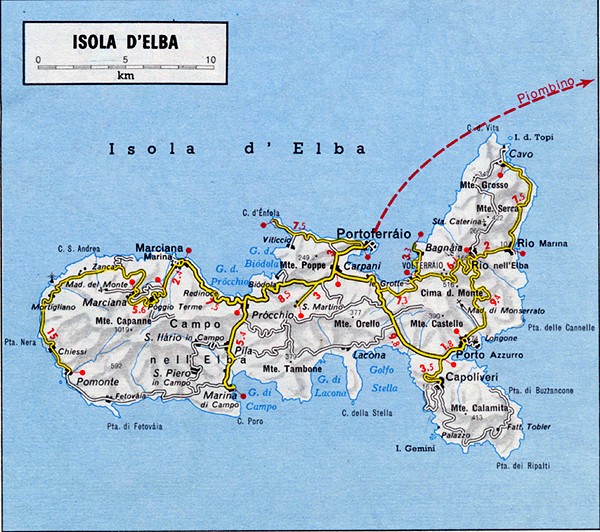 Elba tillhör Toscanas skärgård, en samling om sju öar som ligger mellan Liguriska havet och Tyrrenska havet. Legenden säger att när Venus steg upp ur havet, tappade hon sju pärlor från sitt diadem och det är de som är dagens öar. Elba är Italiens tredje största ö och den grönaste av dem alla. Napoleon stannade bara tio månader på Elba, men han lyckades sätta sin prägel på den ytterst natursköna ön.