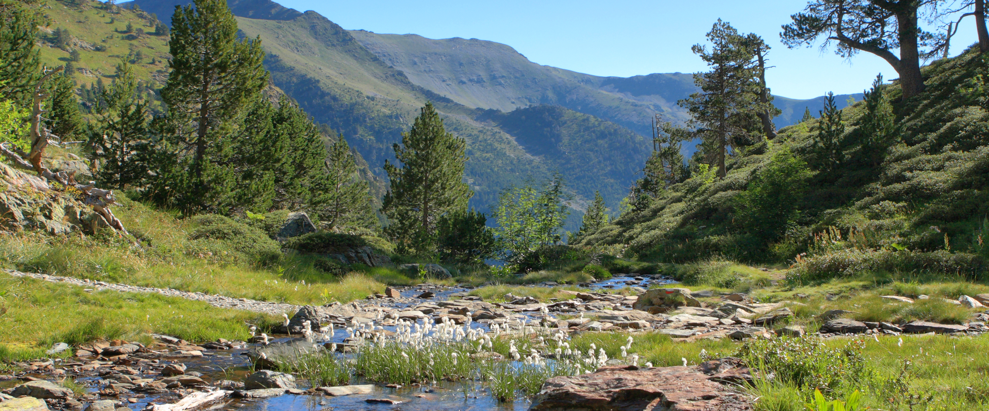 Från Ordinodalen följer vi vägen upp till Val de Rialb, en av Andorras mest natursköna dalar. Här börjar dagens vandring på en lättgången stig längs en porlande bergsbäck, omgiven av blomstrande ängar och betande hästar. Vi passerar den lilla fjällstugan Refugi de Rialb innan stigen blir brantare och leder oss upp till Port de Siguer (2 397 m) – passet som markerar gränsen till Frankrike.