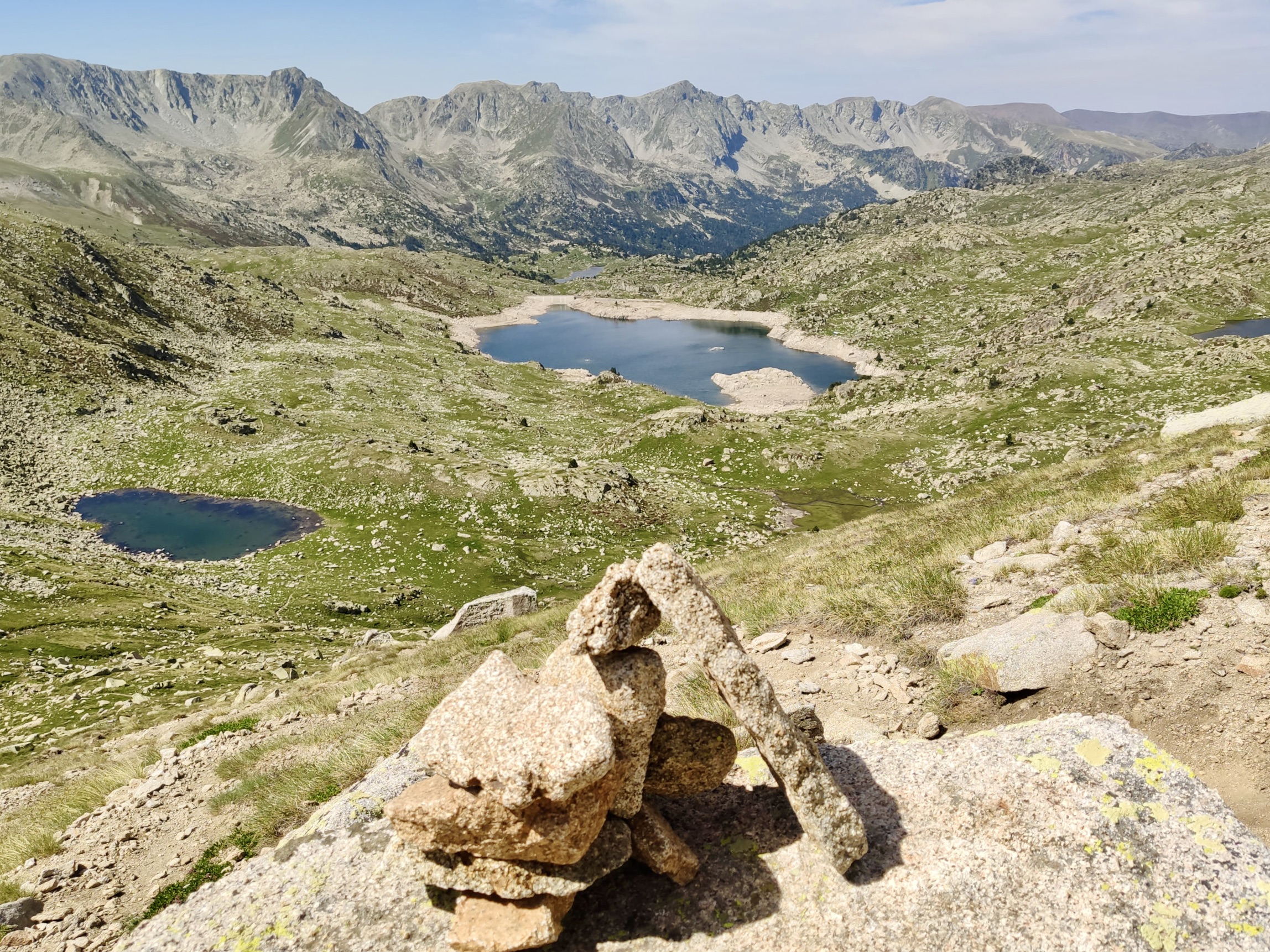 För den som vill ha mer utmaning väntar den så kallade Tristaina Circuit – en delvis krävande rundtur på hög höjd ovan samtliga sjöar. Leden är smal och stenig, stundtals brant med djupa stup på ena sidan, men belöningen är en av Andorras mest spektakulära utsikter. Här äter vi lunch på en klipphylla med panorama över hela Tristainadalen.