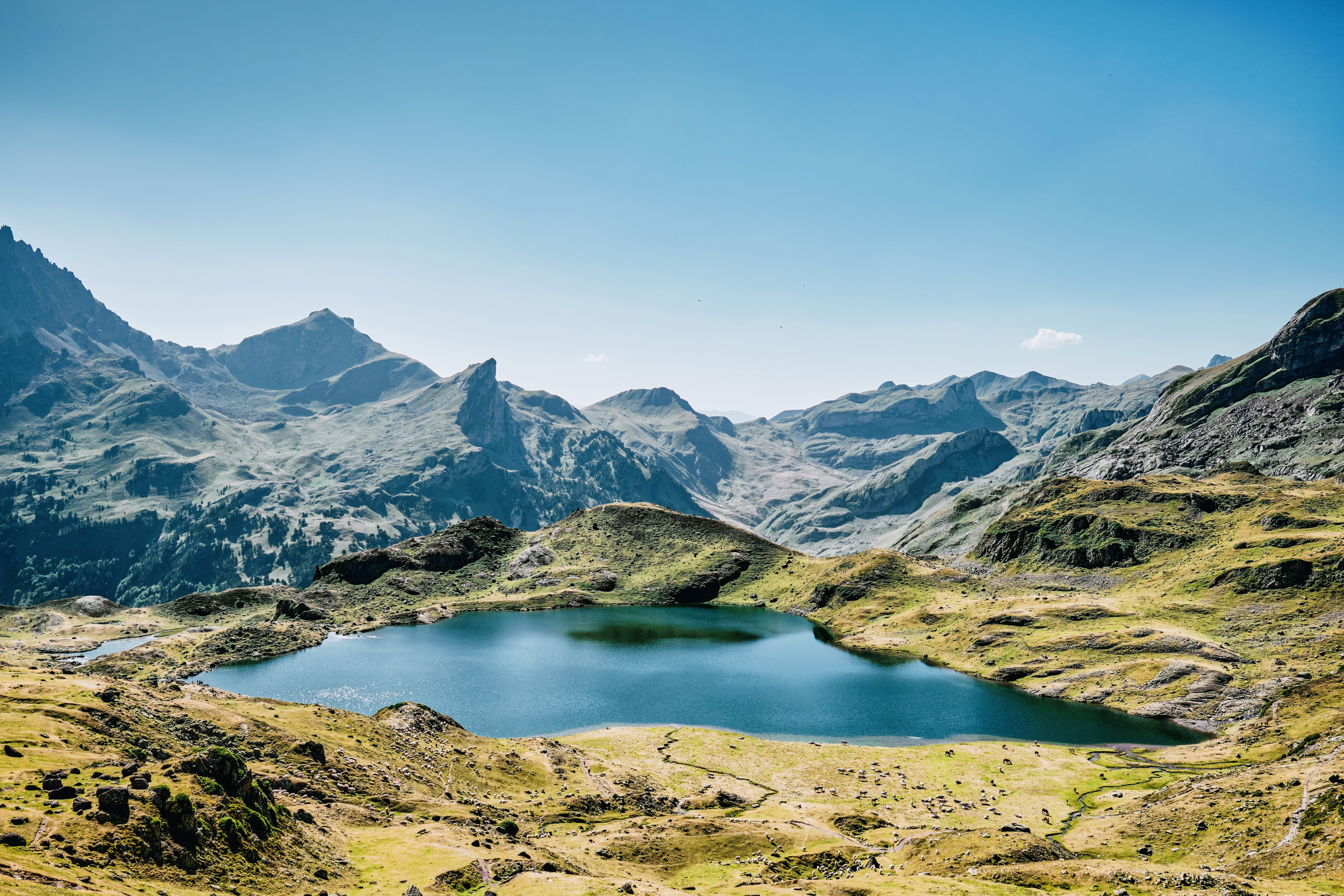Även om Pyrenéerna ligger längre söderut än Alperna har de ungefär samma vandringssäsong. I början av juli står blomsterprakten i full blom och vädret är varmt, men oftast med en behaglig temperatur som gör vandringen njutbar. Här finns få bergsrestauranger eller refugis längs lederna. I stället har vi med oss egen picknick som vi njuter av ute i naturen – kanske med utsikt över en glittrande fjällsjö.