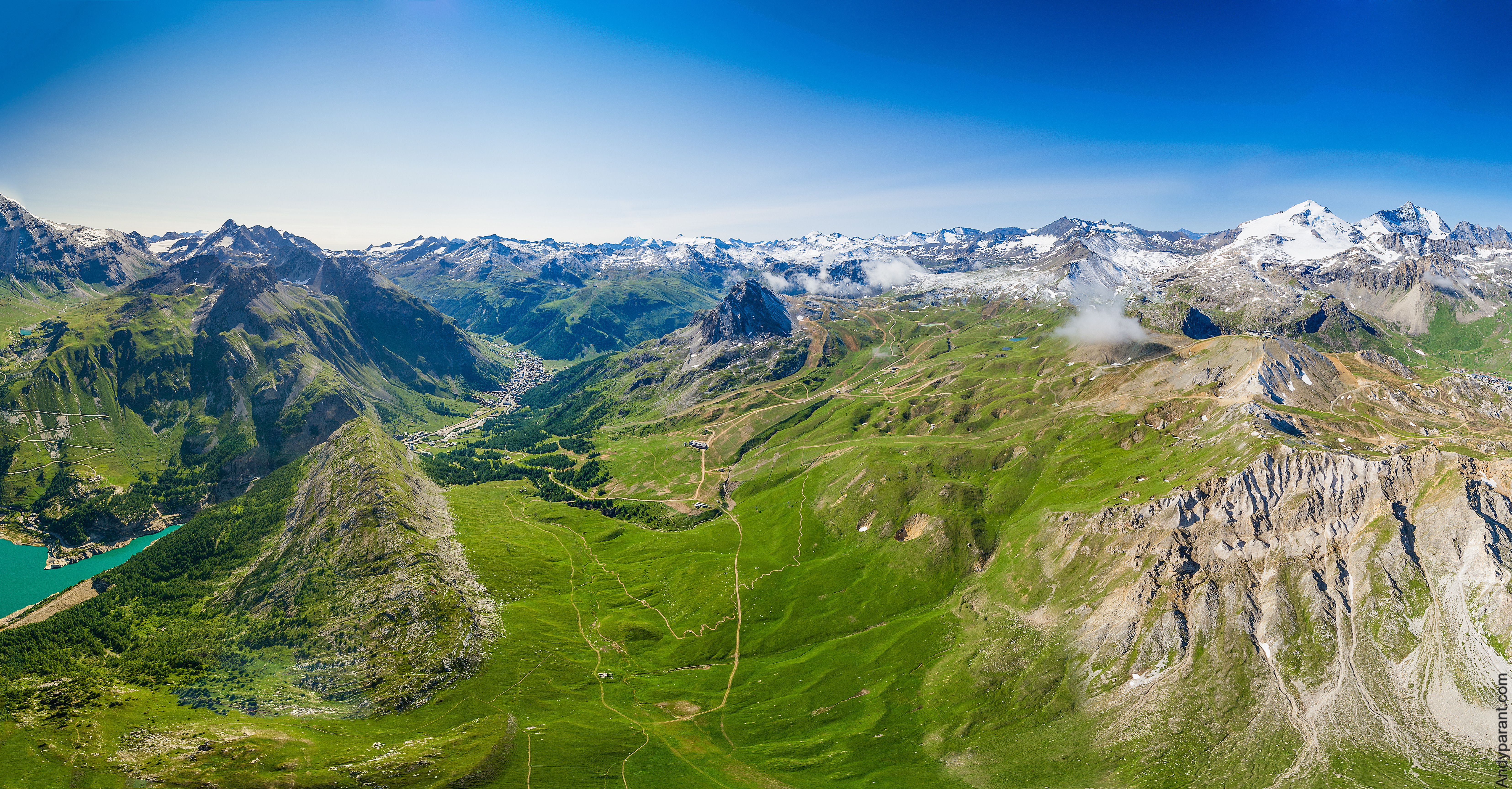Aguille Percée: Denna tur är väldigt spektakulär, men relativt lätt sett till ansträngning eftersom den till störste delen går utför. För att göra den här vandringen bör man vara stegsäker och inte ha anlag för svindel. Den börjar i ett väldigt kargt landskap som bara består av klippor och sten, men vartefter vi tar oss neråt ökar grönskan. Med taxi åker vi till grannbyn Tignes där vi tar en sittlift upp till drygt 2 500 meters höjd. Därifrån går vi cirka 200 höjdmeter upp till Aguille Percée – Nålsögat – en valvformation i berget som ser ut som just ett stort nålsöga. Stigen upp är stenig och brant. Därifrån går vi uppe på en smal bergskam neråt och innan vi når Tignes viker vi av och fortsätter så småningom genom en skog ner mot byn Le Boisses där taxin hem väntar. Högsta höjd på denna vandring är drygt 2 700 meter.
