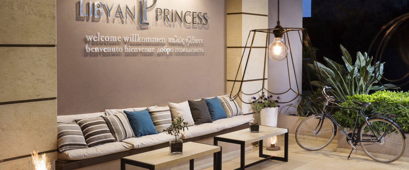 Vi bor på Hotel Libyan Princess, som är ett modernt, fyrstjärnigt hotell med rymliga rum som alla har egen balkong. Hotellet är beläget i charmiga Paleochora, bara ett par minuters promenad från havet samt den livliga gågatan med alla sina tavernor och små butiker.