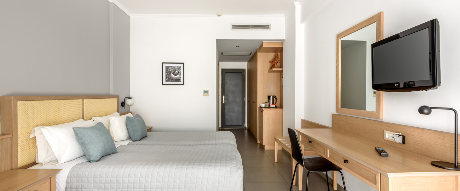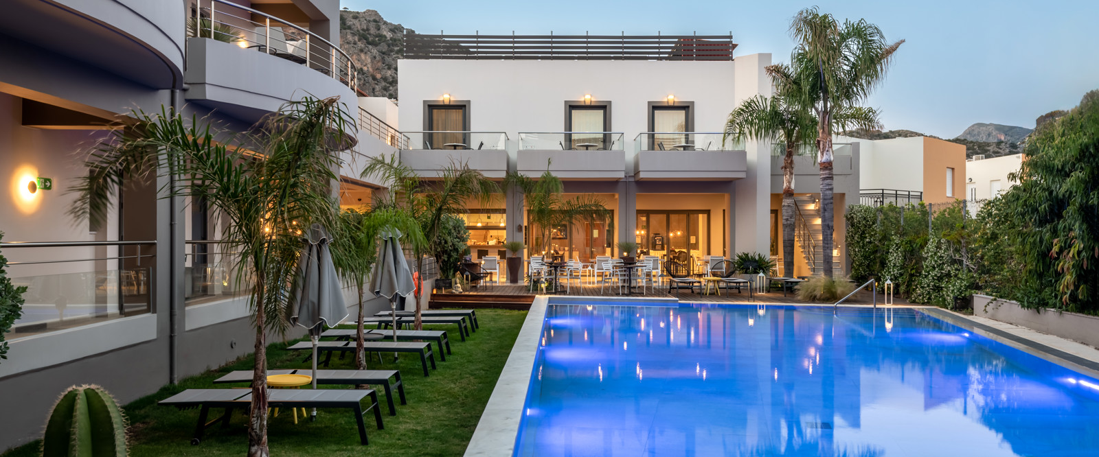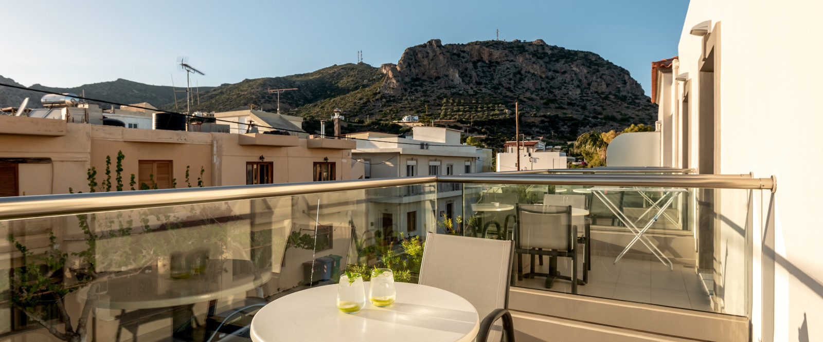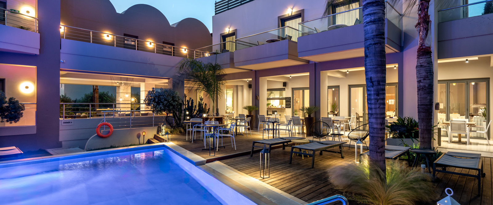 Det är ett litet familjeägt hotell med personlig service och en egen utomhuspool. Middagarna äts ute på trevliga tavernor och restauranger i närheten av hotellet.