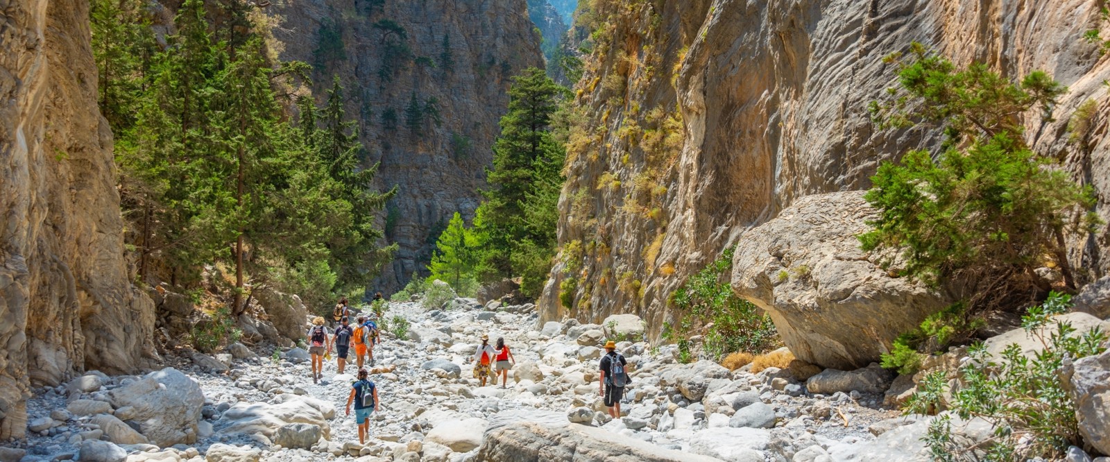 Dagens vandring går genom den välkända Samariaravinen, som sägs vara Europas längsta, med en nedstigning på drygt 1 200 meter under en 17 km lång vandring. Efter två kilometer nedför längs sicksackande stigar, blir det mer lättvandrat. Naturen ståtar med cypresser och platanträd och man kan känna doften av vilda kryddor som salvia och timjan. Här finns grottor och kalkstensklippor och halvvägs ned ligger den öde byn Samaria. Efter dagens lite längre vandring är det skönt att ta något att dricka eller ett dopp i havet innan vi tar färjan till Paleochora.