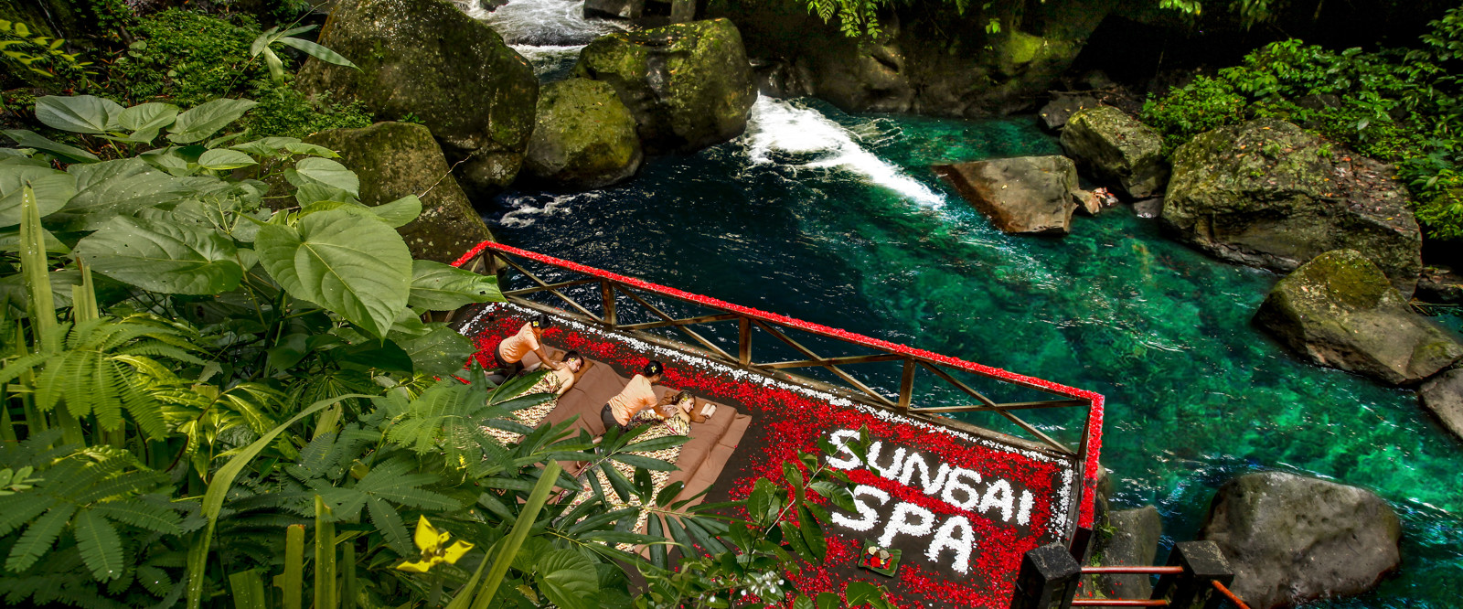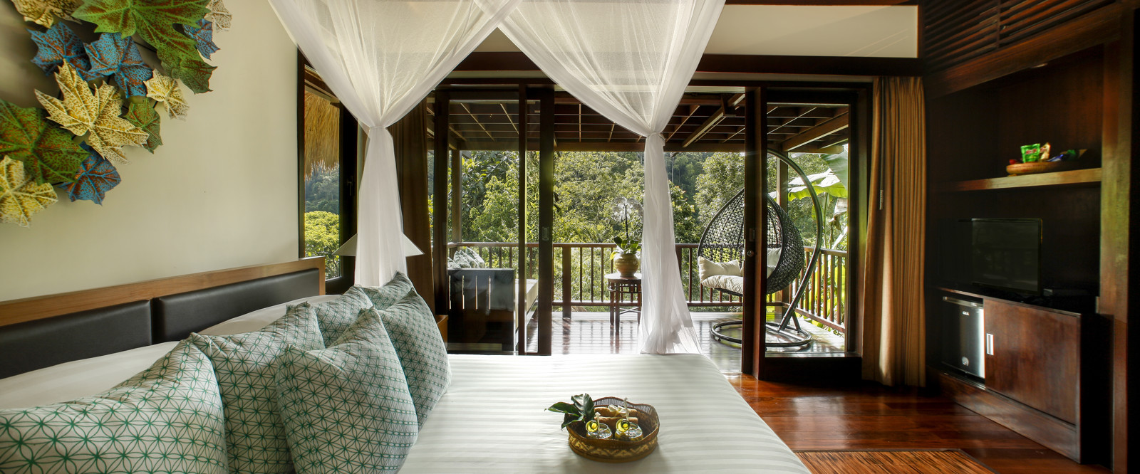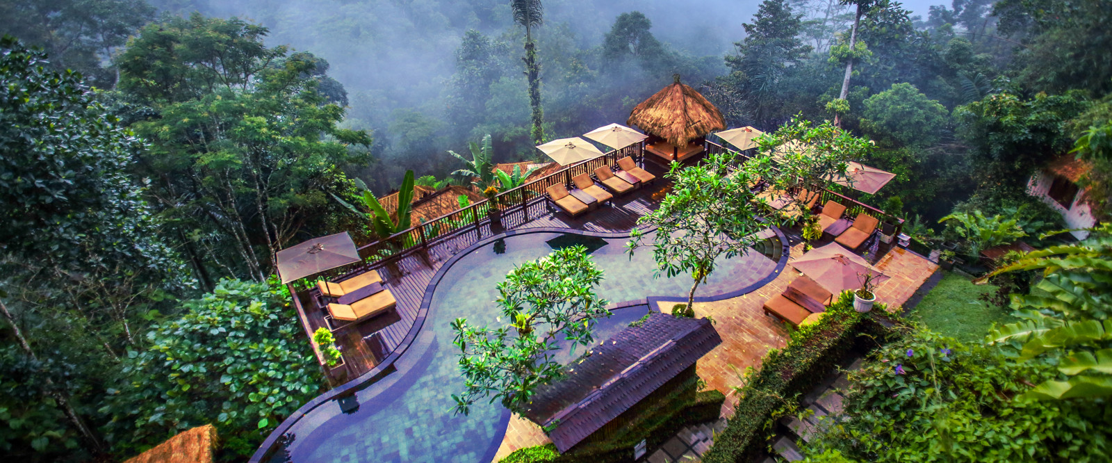 Här bor man nära naturen och kan njuta av stillhet och grönska. Svit-rummen är väldigt rymliga och inredda i klassisk balinesisk stil kombinerat med moderna bekvämligheter som t ex smart-TV och fritt Wi-Fi. Intill hotellet ligger deras egen yoga-plats, där harmoni och lugn infinner sig tack vare Ayung-flodens porlande. Restaurangen serverar vackra och vällagade rätter i en rogivande miljö. Det finns även möjlighet att boka olika typer av välgörande spa-behandlingar (mot tillägg).