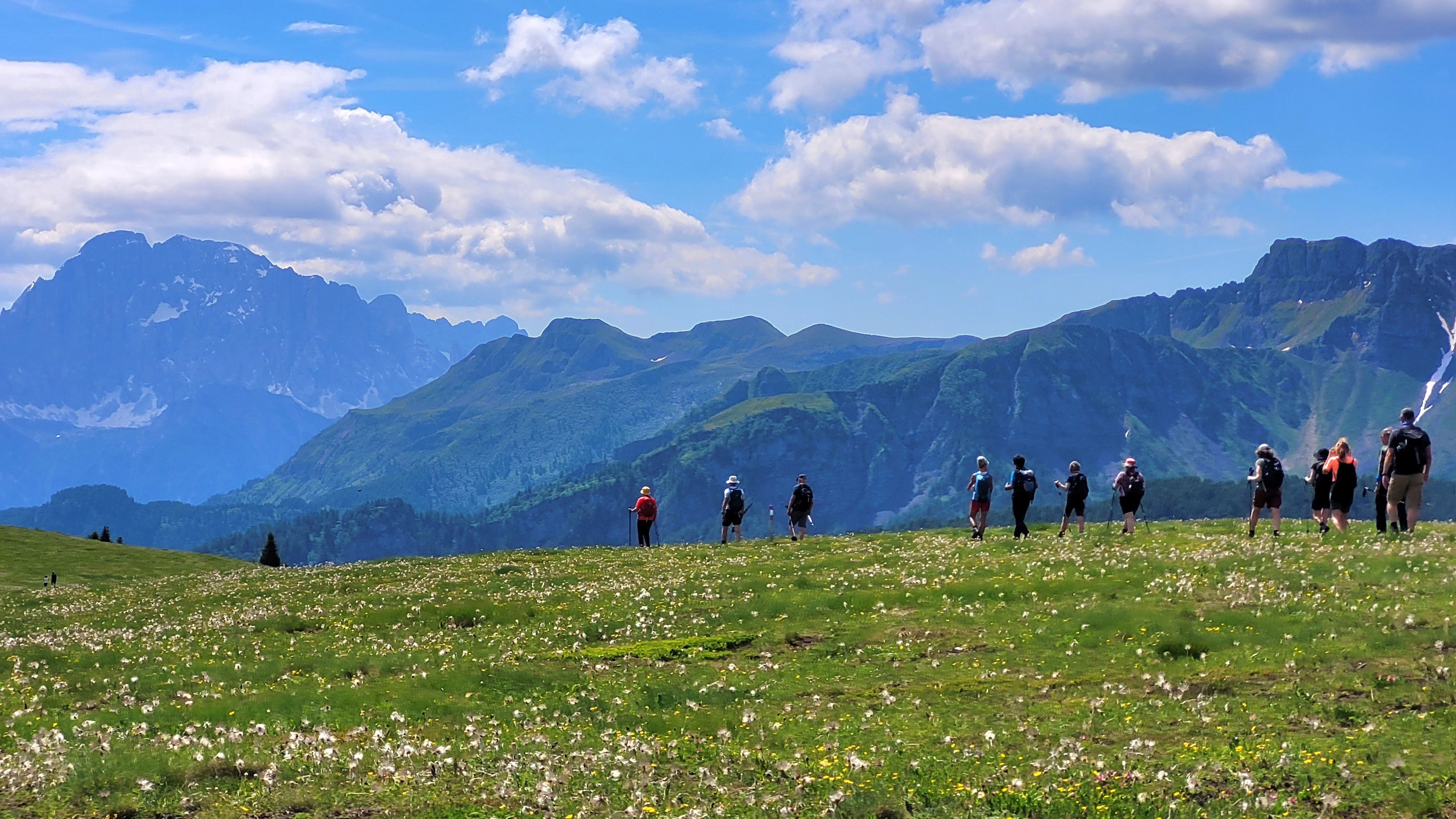 Under veckan vandrar vi i vad många anser vara det mest spektakulära landskapet i hela alpkedjan. Vi anser att dessa vandringar håller medelsvår nivå även om många partier är lättvandrade så kan vissa partier som kan upplevas som lite tuffare. Vandringsresan kombinerar vandringar över blommande alpängar, längs dalgångar, utmed sluttningar och berg på mjuka stigar eller över stenigare partier.