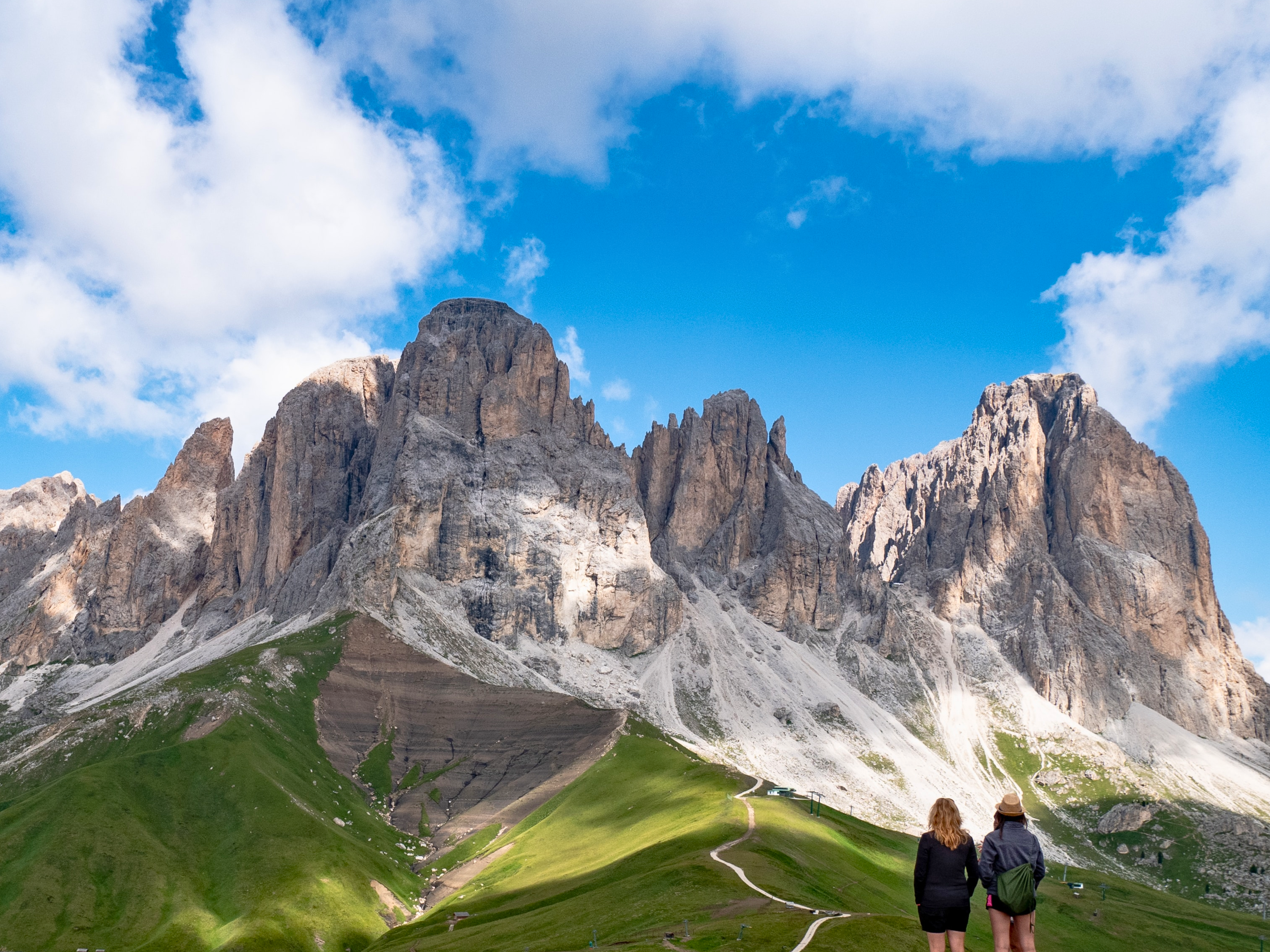 En av Arabbas mest klassiska vandringsturer! Eftersom vi vandrar ovanför trädgränsen får vi oskymd utsikt över de dramatiska bergen, såsom Sella, Marmolada och Sasso Lungo. Stigen är en flera hundra år gammal, mycket välskött vandringsled även om några korta ojämna partier förekommer under dagen. Då vi tar hjälp av två linbanor idag, en upp och en ner, är det väldigt lite höjdskillnad att tala om. När vi har två grupper finns det möjlighet att vandra en annan variant för att undvika några av de lite tuffare och mer utsatta partierna. Den här dagen bjuder på fantastiska vyer över de olika bergsmassiven och är en bra introduktion till området. Efter lunch går vi tillsammans till Passo Pordoi och här finns det sedan oftast lite olika alternativ som färdledaren kan erbjuda.