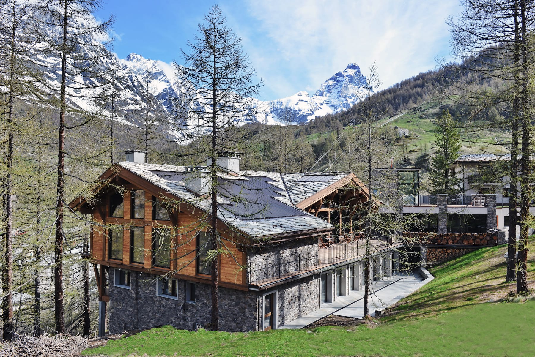 En oas strax utanför det annars livliga Cervinia, där du kan njuta av naturens lugn, stillhet och en härlig atmosfär. Hotellet är byggt i klassisk alpstil med en modern touch och erbjuder stilrena, harmoniska rum och badrum som präglas av naturliga färger och hög komfort.
