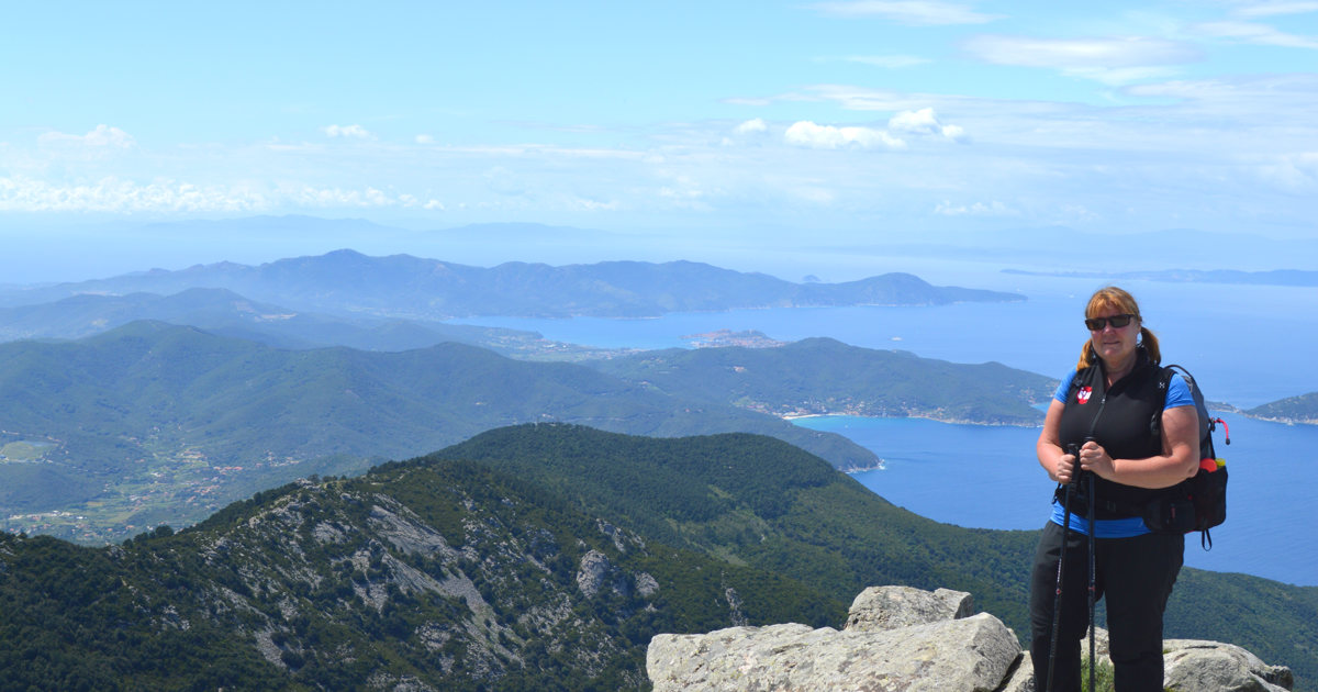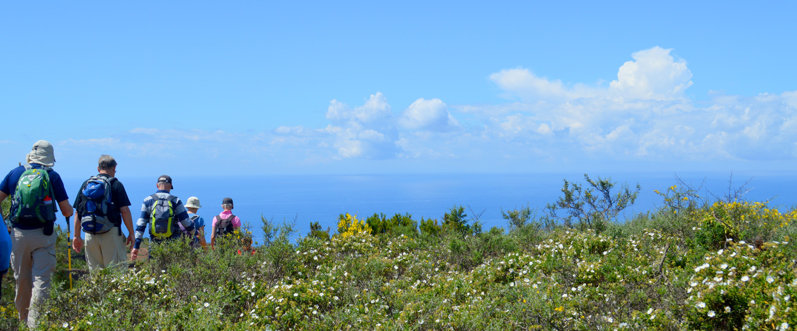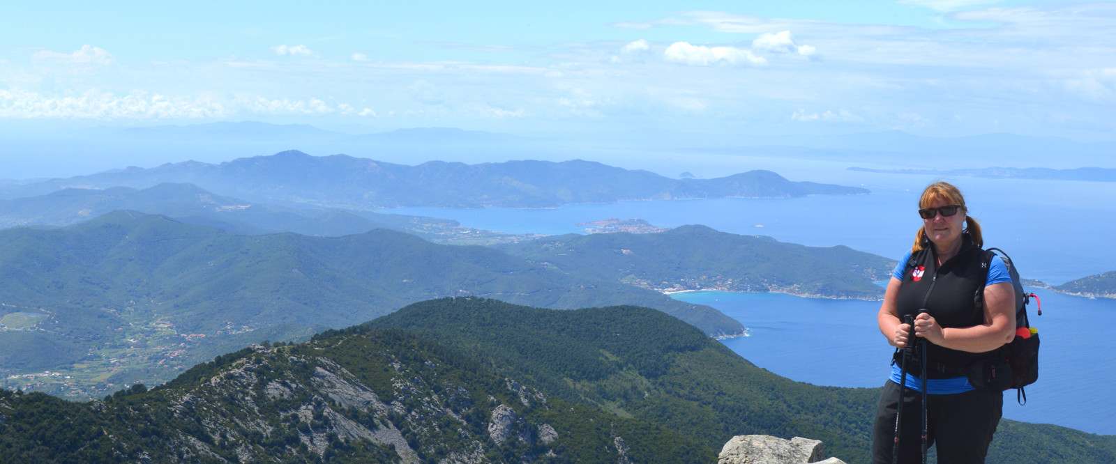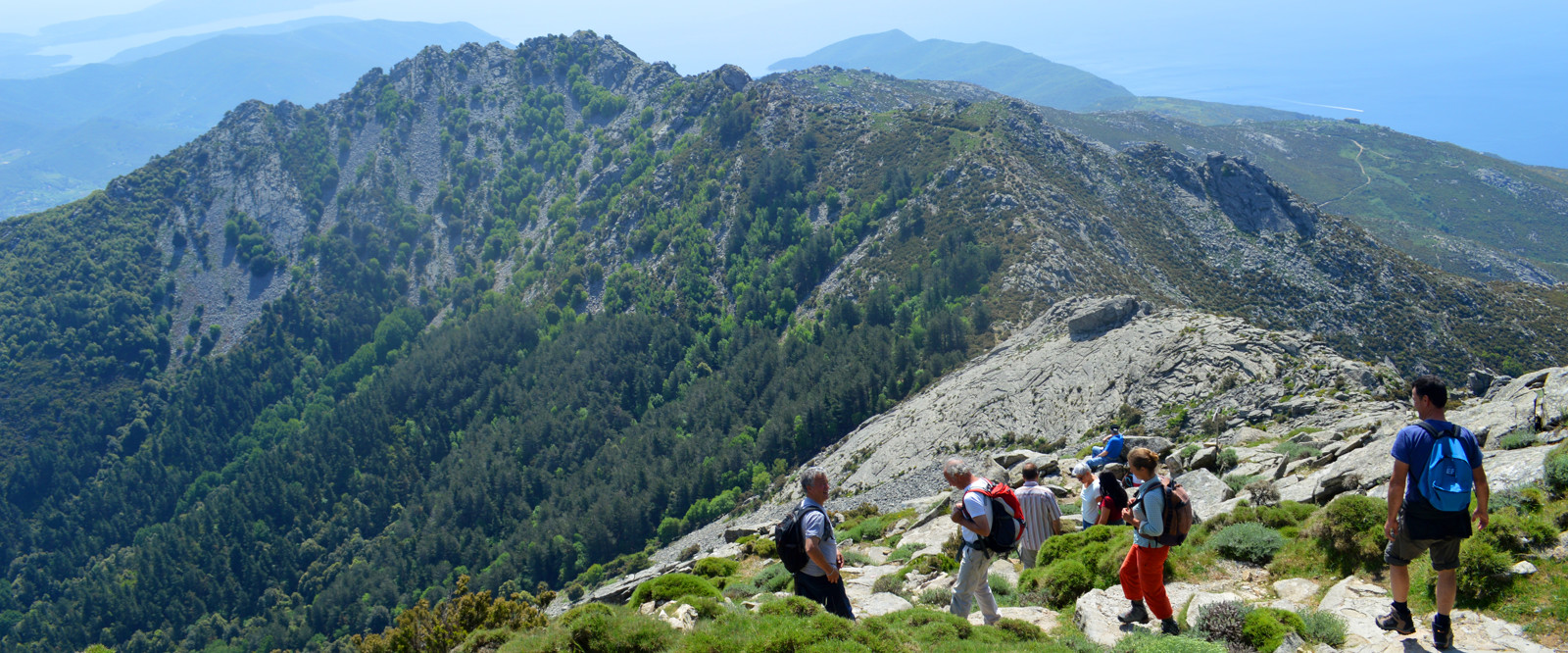 I första hand så startar vi i den lilla bergsbyn Poggio och vandrar uppför Monte Capannes sluttningar upp till toppen, vilket tar drygt två timmar, lite beroende på gruppen. Stigen lutar kraftigt uppför men väl uppe smakar den medhavda matsäcken extra gott och vi belönas med en fantastisk utsikt på toppen. Här har man en obeskrivlig 360 graders vy över hela den 224 km² stora ön och med lite tur ser vi en klar dag Napoleons Korsika. (Lite kuriosa. Det sägs att Greta Garbo och även Winston Churchill semestrade i Poggio vid olika tillfälle).