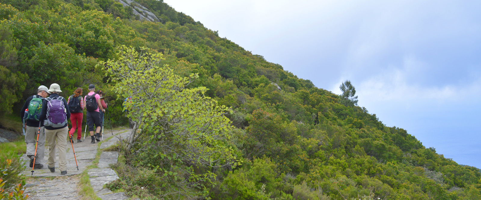 Elba är en klippö, vilket också innebär att en del passager är av det lite brantare slaget. Underlaget är ofta stenigt så viss vaksamhet krävs och innebär att nivån på vandringarna är mestadels medel till medelsvår.
