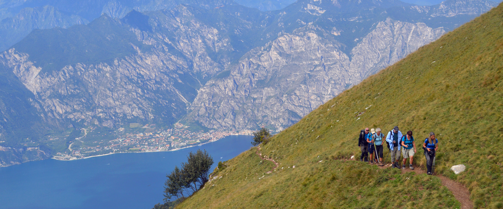 Vid strandens södra sida sträcker sig vinodlingar och olivlundar ner till det klarblå vattnet. Längre norrut omfamnar höga bergskedjor den vackra sjön som kantas av små charmiga och välbesökta medeltidsstäder, Vårt boende ligger vid norra delen av sjön och har ett perfekt läge för vandring i de omgivande bergen och vi besöker även Monte Baldo med områdets högsta topp.