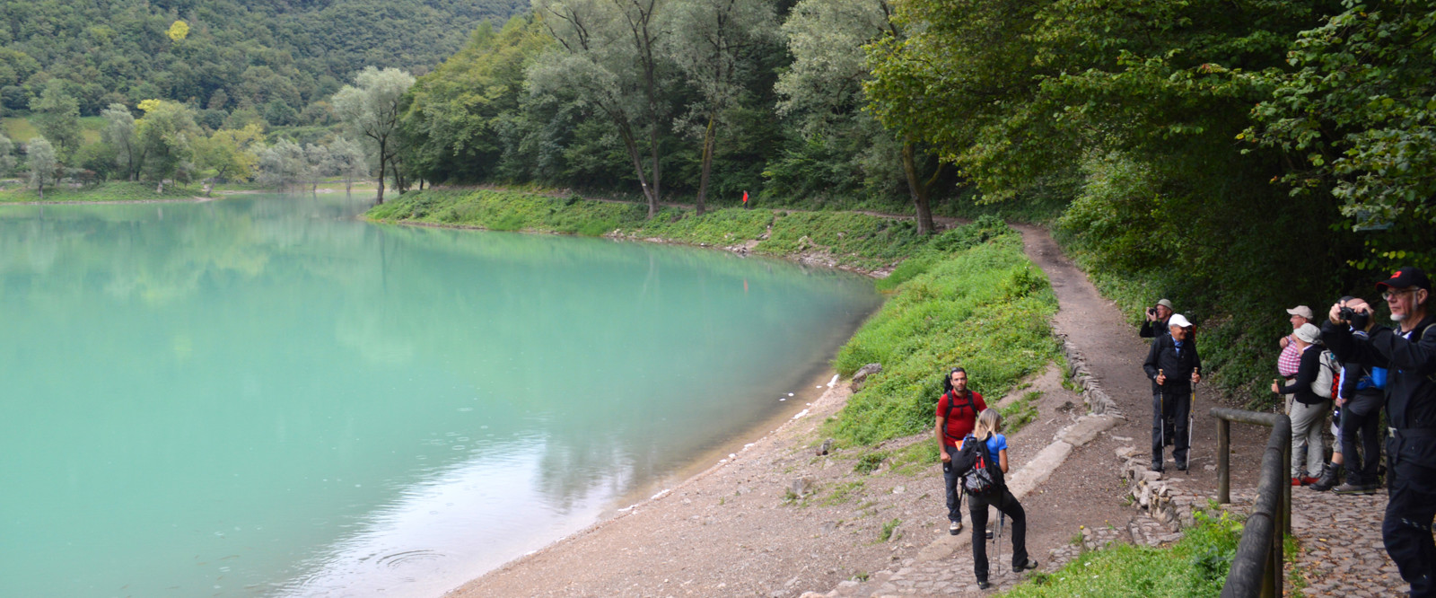 Vi börjar dagen genom att i lugnt tempo promenera runt sjön Tenno som formades runt år 1 100 e.Kr. efter ett stort jordskred. Den turkosblå sjön inbjuder gärna till ett dopp. Bara ett stenkast bort finns den medeltida byn Canale med sina gamla stenhus och gränder. Idag betraktas Canale som en av Italiens vackraste byar med mängder av kulturella och konstnärliga evenemang. Vi vandrar sedan vidare mot Rifugio San Pietro med utsikt över Riva del Garda och Gardasjön, där vi kan välja mellan Trentinos typiska rätter till lunch (ingår ej).
