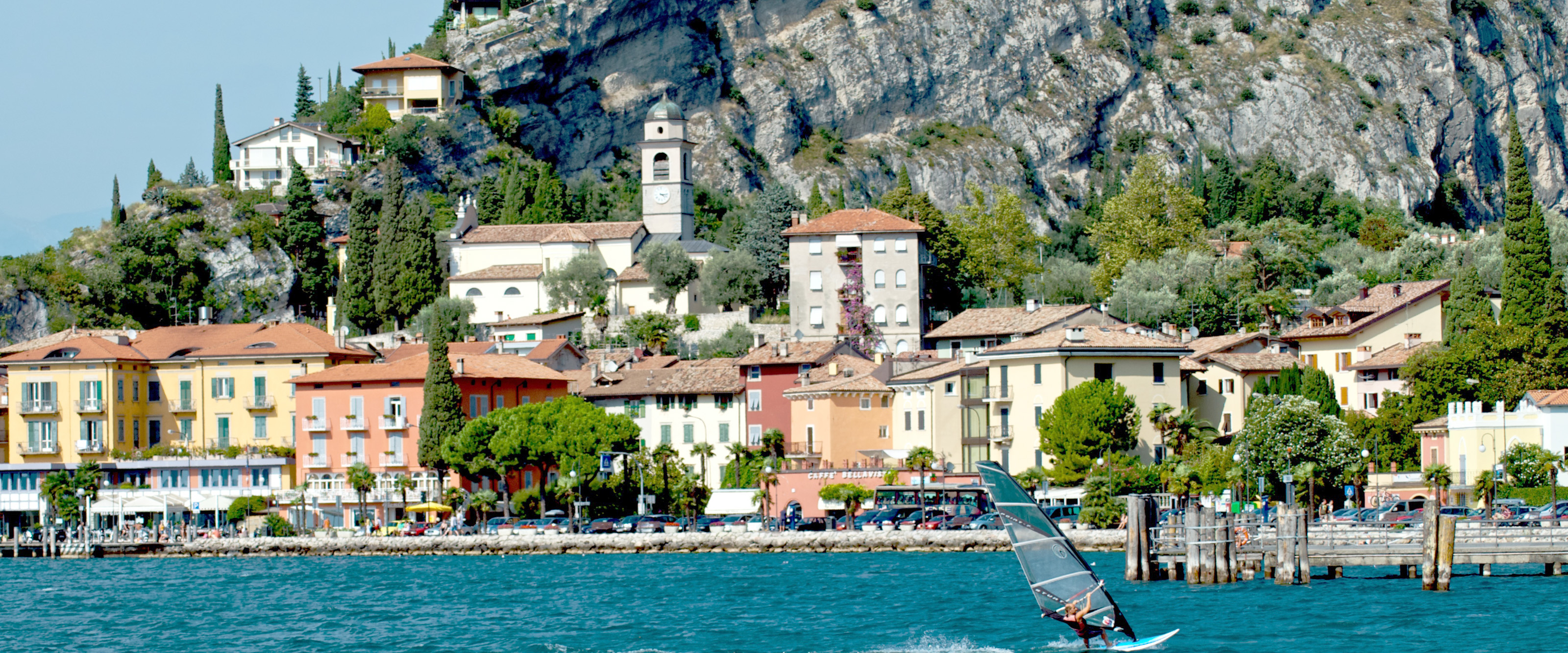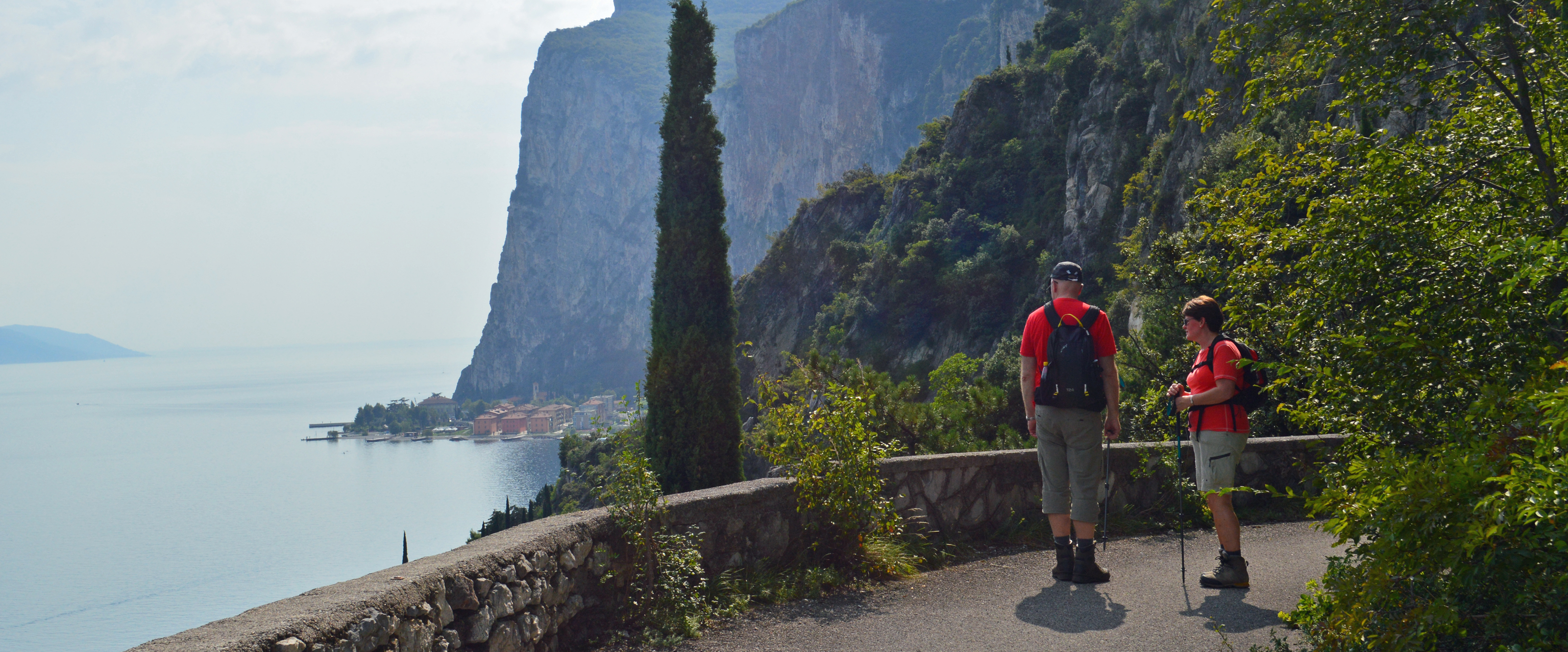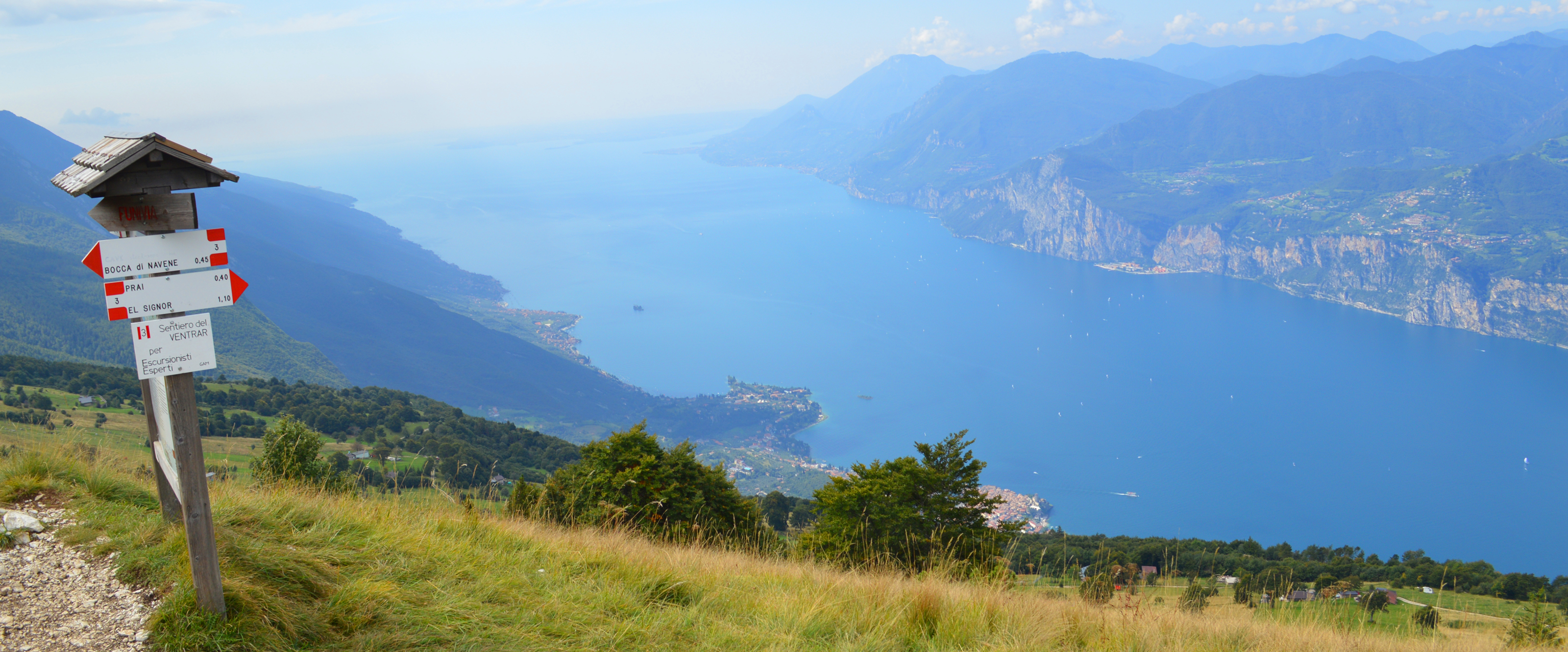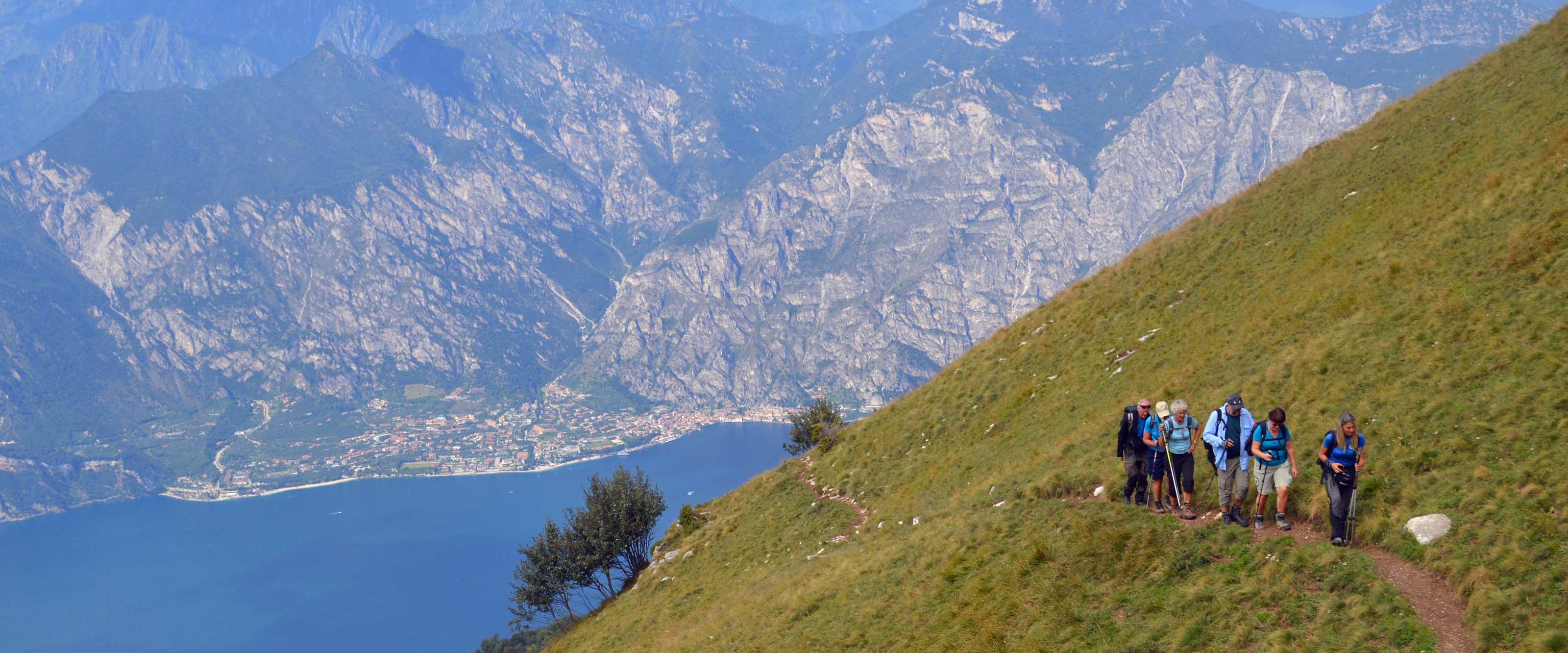 Vid strandens södra sida sträcker sig vinodlingar och olivlundar ner till det klarblå vattnet. Längre norrut omfamnar höga bergskedjor den vackra sjön som kantas av små charmiga och välbesökta medeltidsstäder, Vårt boende ligger vid norra delen av sjön och har ett perfekt läge för vandring i de omgivande bergen och vi besöker även Monte Baldo med områdets högsta topp.