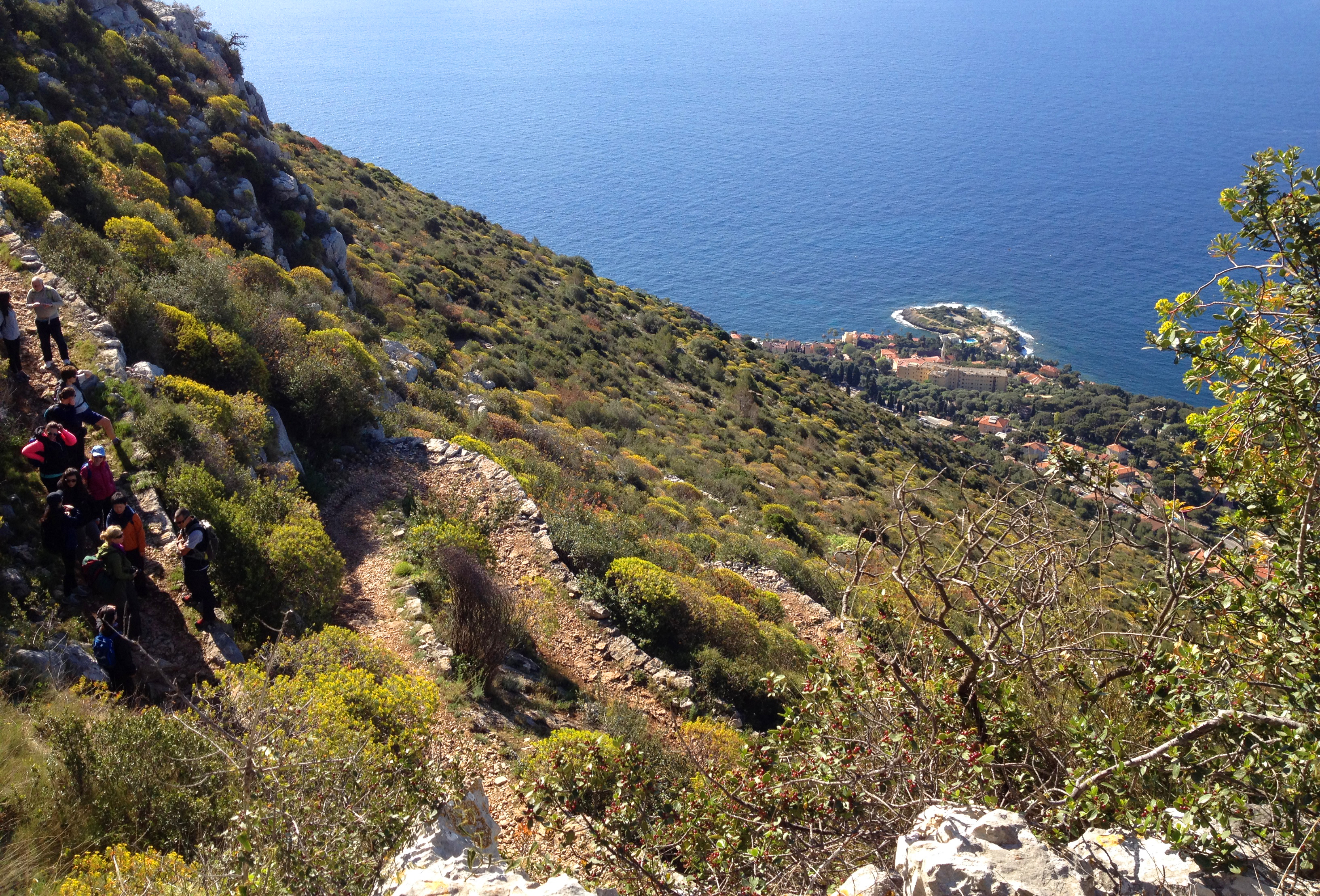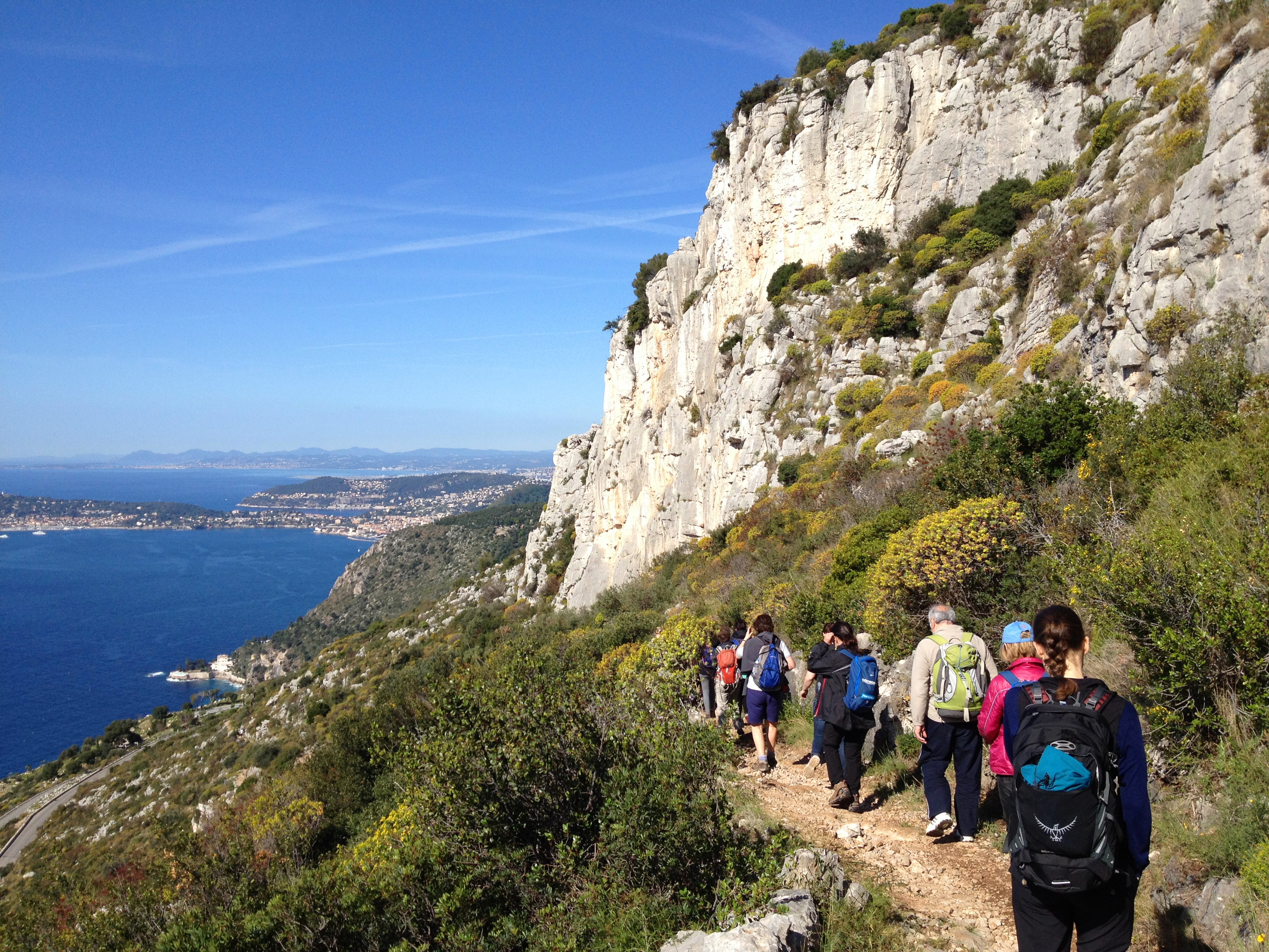 Vi åker buss till startpunkten Tête de Chien ovanför Monaco. Förutom att man kan spana in Monaco ovanifrån, så har man strålande vyer över bergen och havet. Leden vi ska vandra heter Chemin Romain och det tar cirka 2 ½ timme på slingrande naturstigar ner mot kusten. Vi vandrar förbi kalkstensklippor och genom medelhavsmacchia, där det doftar av örtväxter, lavendel och diverse blommor. Vi når kusten och havet vid Cap d’Ail och promenerar vidare längs strandpromenaden vid havet. Sedan kan man välja om man vill stanna och se mer av någon av kuststäderna på egen hand och sedan ta tåget tillbaka eller om man åker med gruppen till hotellet.