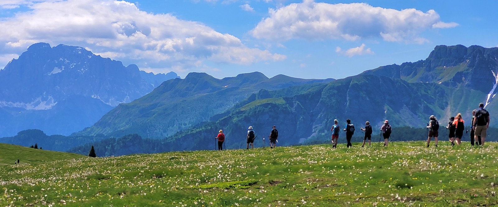 Vi vandrar i gränslandet mellan Dolomiterna och Alperna. På denna singelresa, för dig som reser ensam, bor vi i legendariska Madonna di Campiglio. Vandringarna går i dramatisk terräng med taggiga bergstoppar och vi njuter av blommande alpflora.