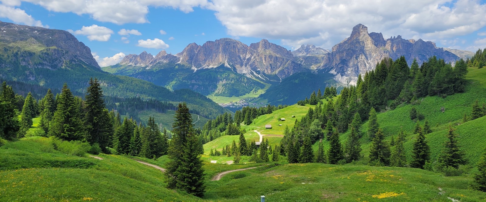 Vandringen idag utforskar en annan del av området runt Arabba, som vanligt med ett spektakulärt landskap. Den här dagen bjuder på mycket grönska och mestadels lättvandrade stigar och grusvägar. Första biten går långsamt uppför. Här är vi omgivna både av berg och bergskedjor som Puez-massivet, Sassongher, Tofane, Marmolada och Sellagruppen men även blommande alpängar. Kort paus för något att dricka innan vi kommer upp på en grön platå (Pralongia=lång gräsmatta). Här har man en fantastisk 360 graders panoramavy över alla berg. Förutom att njuta av landskapet äter vi lunch på en av de små bergsrestaurangerna, även här med en härlig utsikt över Passo Campolongo och Corvara. Tillbakavägen går delvis genom skog på lättvandrande stigar och kanske hinner vi med ännu något att dricka innan bussen tar oss tillbaka till hotellet.