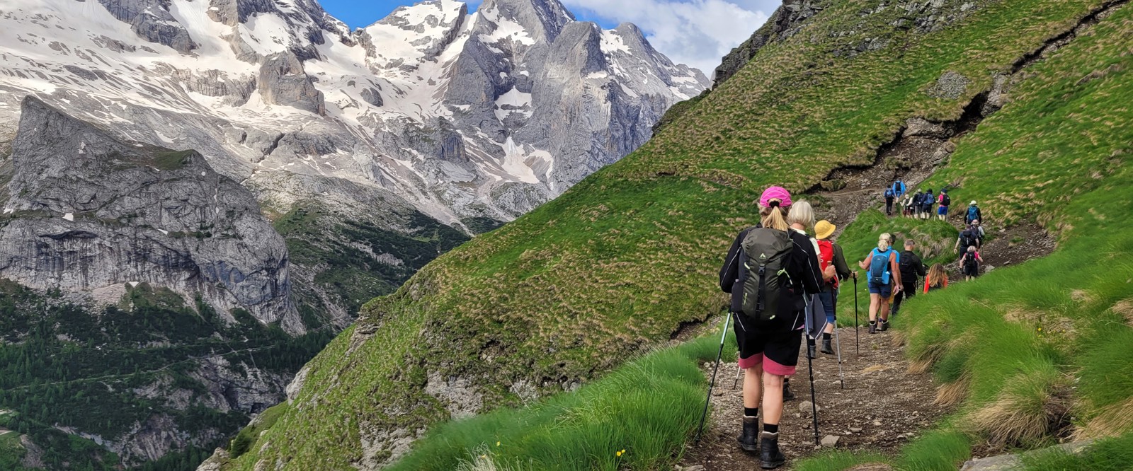En av Arabbas mest klassiska vandringsturer! Eftersom vi vandrar ovanför trädgränsen får vi oskymd utsikt över de dramatiska bergen, såsom Sella, Marmolada och Sasso Lungo. Stigen är en flera hundra år gammal, mycket välskött vandringsled även om några korta ojämna partier förekommer under dagen. Då vi tar hjälp av två linbanor idag, en upp och en ner, är det väldigt lite höjdskillnad att tala om. När vi har två grupper finns det möjlighet att vandra en annan variant för att undvika några av de lite tuffare och mer utsatta partierna. Den här dagen bjuder på fantastiska vyer över de olika bergsmassiven och är en bra introduktion till området. Efter lunch går vi tillsammans till Passo Pordoi och här finns det sedan oftast lite olika alternativ som färdledaren kan erbjuda.