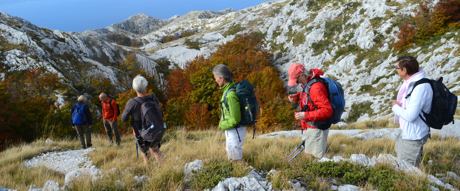 Dagens vandringar anses av många som veckans höjdpunkt. Under dessa turer har vi en underbar utsikt över havet och vi vandrar bitvis genom barrskog och öppna slätter. Naturen uppe på den högre höjden runt Sveti Jure på 1762 möh, skiljer sig från den vid kusten och även temperaturen och ”årstiden”. Här uppe kan man möta de sprakande höstfärgerna samtidigt som man fortfarande har sensommar vid havsnivå med möjlighet till ljumma bad.
