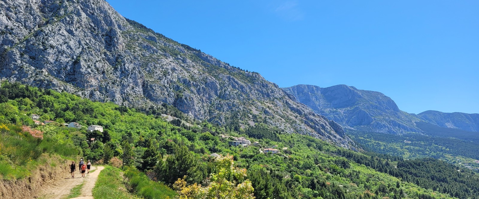 Vi börjar lite lugnt denna dag och vandrar alla tillsammans i omgivningarna nära Makarska. Vi startar vår vandring i Tučepi och vandrar sedan genom äldre bebyggelse och byar som Srida Sela, Podpeć, Kotšina och Makar till Makarska. I byn Kotšina passerar en botanisk trädgård och en antik borg.