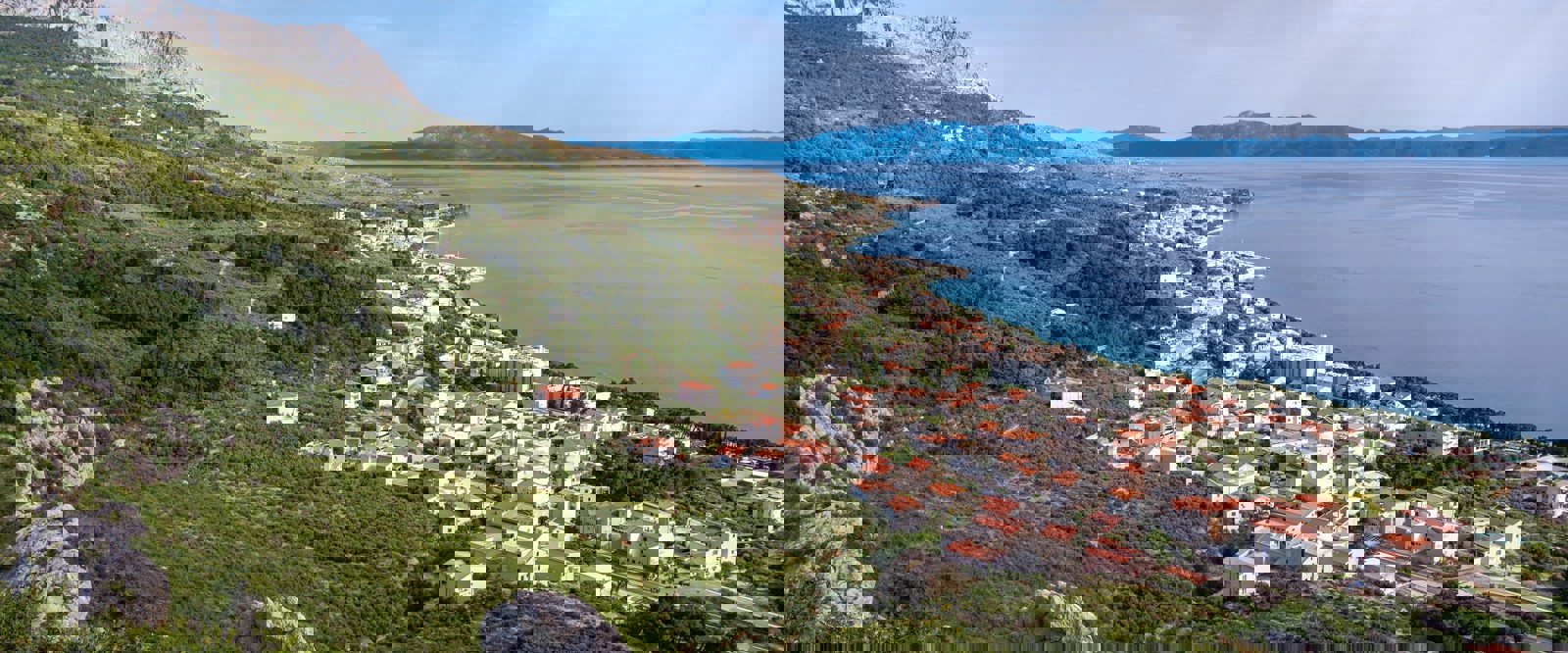 Från Ĉeĉuci följer vi sedan stigen till byn Podašpilje. Efter den något branta uppstigningen belönas vi med fantastiska vyer över bl a Omis och hela kusten.