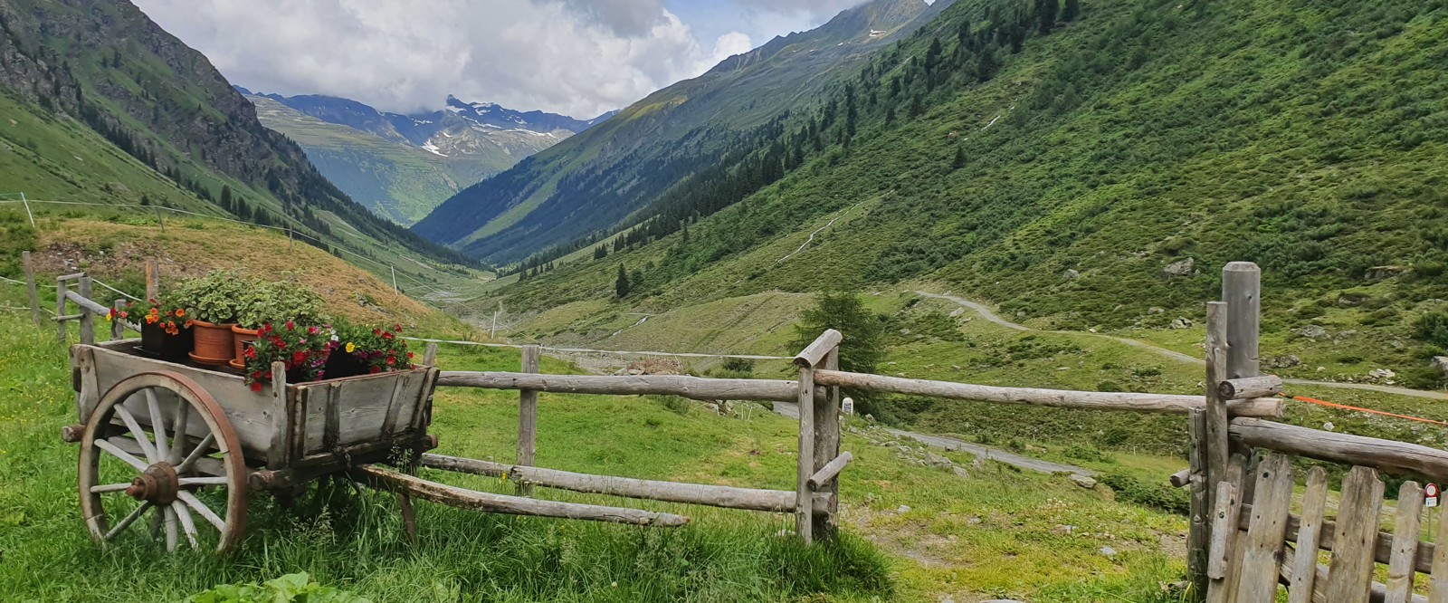 Vi tar lokalbussen till Galtür och sedan Alpkogelbahn upp till dryga 1 900 meter över havet. Därefter går vi först på en grusväg som slingrar sig ganska brant uppåt. När den övergår till en stig går vi neråt ett tag. Då får man vara mer vaksam på underlaget som är ojämnt med stenar och rötter. Därefter ökar pulsen upp när vi viker av uppåt på en serpentinstig, Dock är utsikten över sjön Kopsstausee väl värt besväret. När vi nått korset på Breitspitze (2 203 möh) får vi vid klart väder en vidunderlig utsikt över Partenen och Montafondalen. Där tar vi ett litet mellanmål innan vi går neråt, rundar sjön och till slut kommer fram till Gasthof Zeinisjoch för en sen lunch.