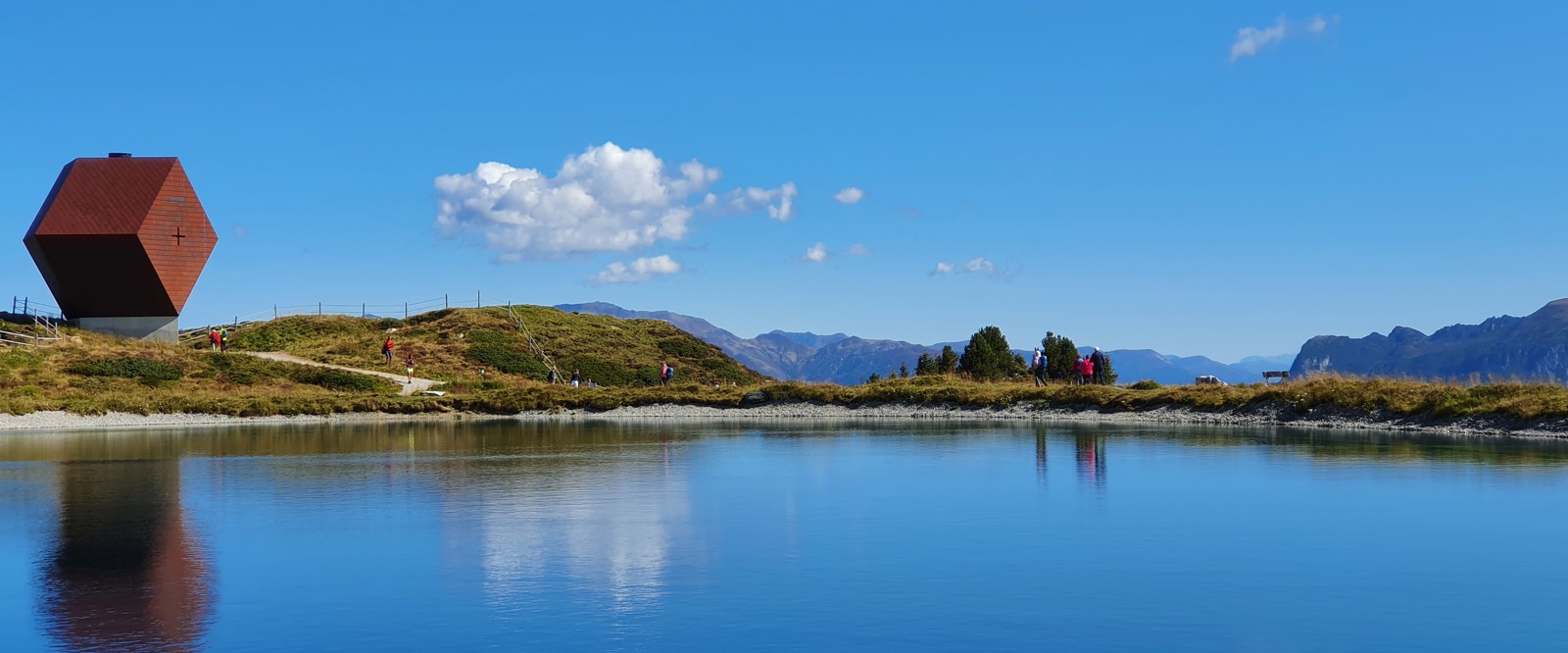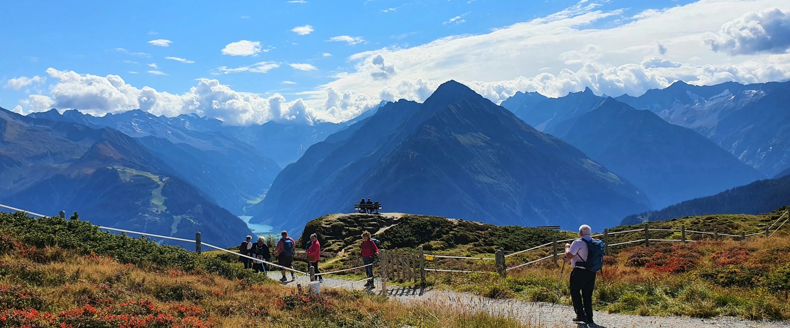 Vi tar Penkenbahn upp och njuter av den vidunderliga utsikten man får på denna sida av dalen. När vi kommit till den högsta punkten går vi cirka 20 minuter till en utsiktspunkt. Vi kommer att se glaciären i Hintertux och flera dalar som tar sin början nära Mayerhofen. Vi vandrar vidare upp till en liten sjö, där man har en fantastisk utsikt både över sjön och de närliggande bergen. Vi tittar in i det lilla kapellet, som är format som en kub. Efter lunch på en mysig hütte med utsiktsterrass, känner vi efter vilken väg vi tar tillbaka. Efter vandringen kan man sedan välja om man vill stanna och strosa i Mayerhofen en stund eller direkt ta tåget tillbaka till Fügen.