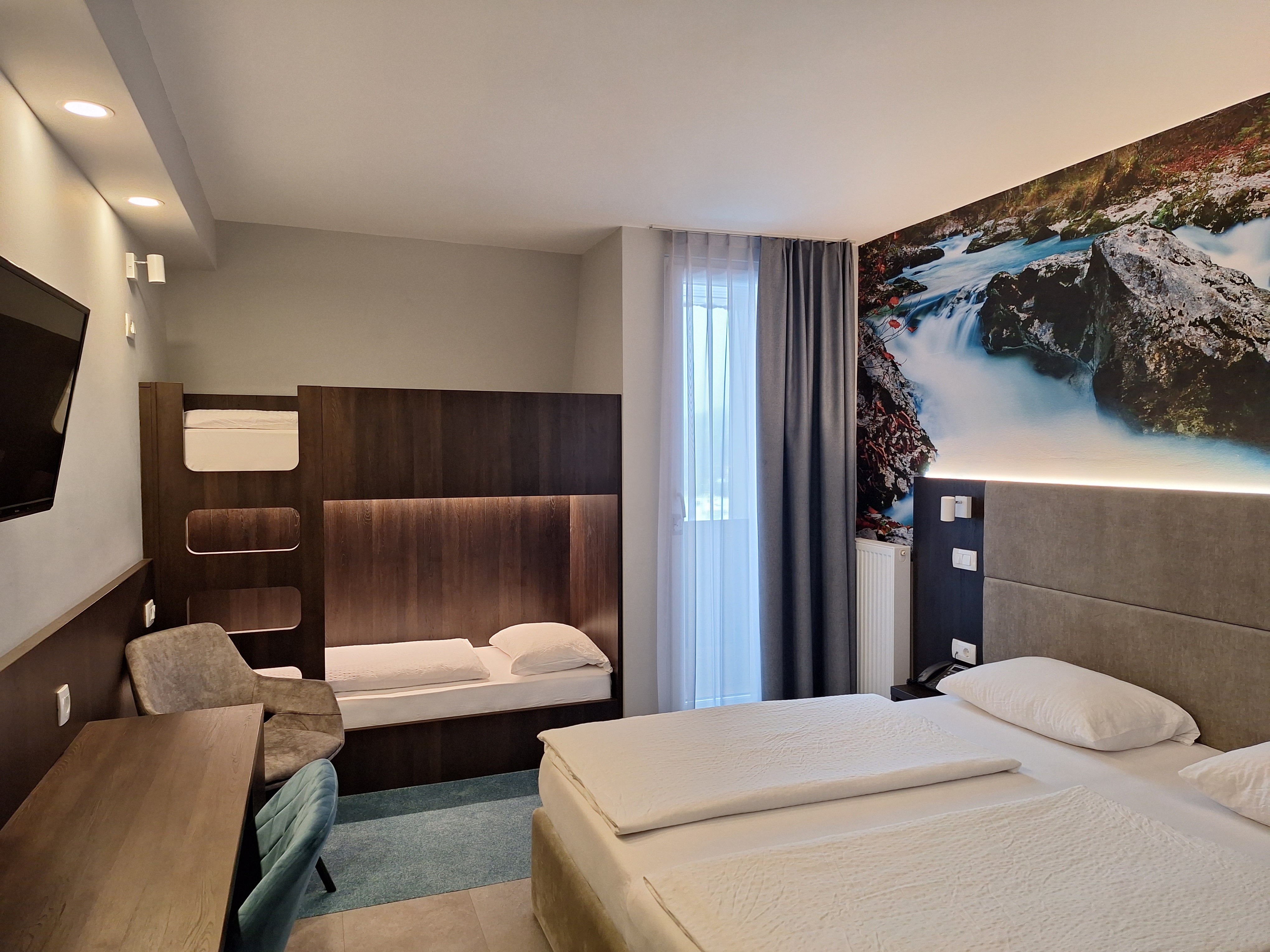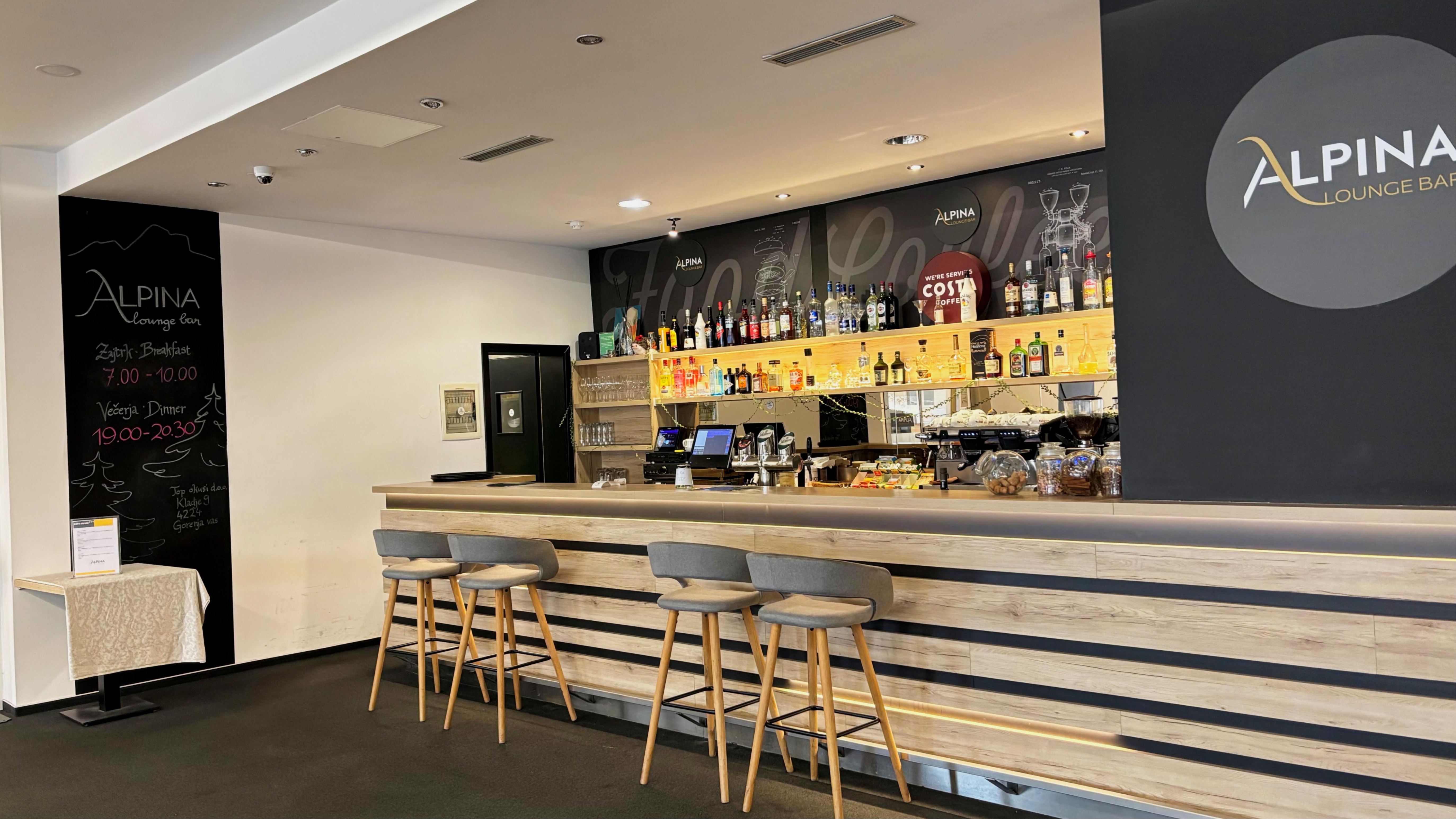 Hotel Alpina ligger precis invid skidbackarna men det tar inte heller många minuter att gå ner till Kranjska Goras centrum. Rummen är nyrenoverade och rymliga med fräscha badrum. De flesta med utsikt över byn med bergen som fond.