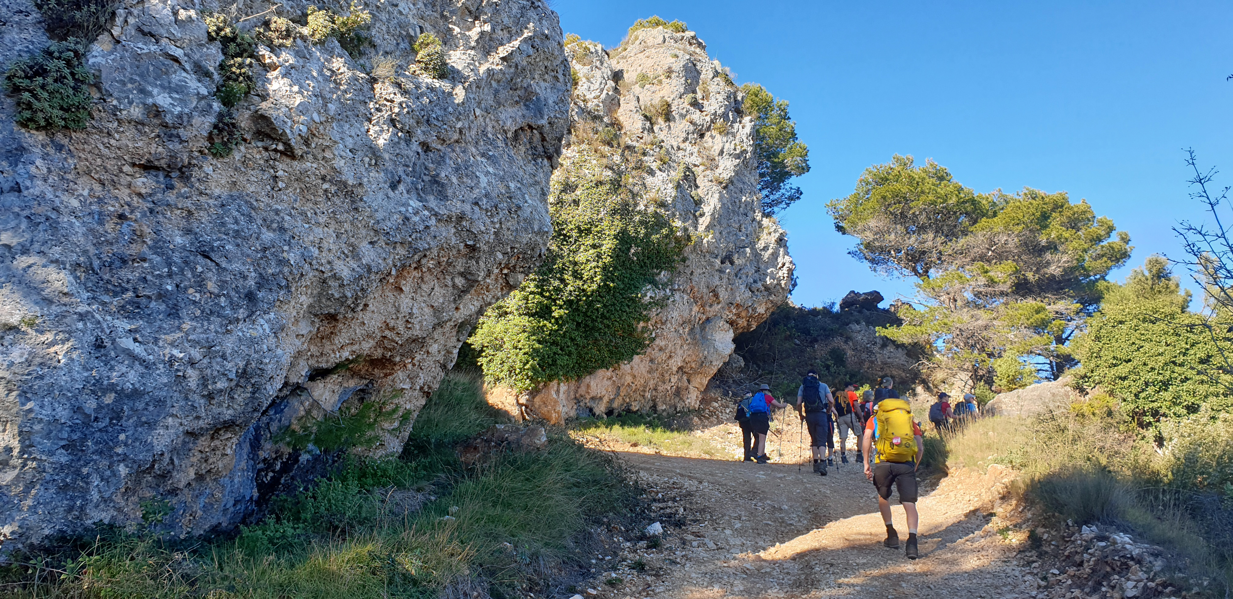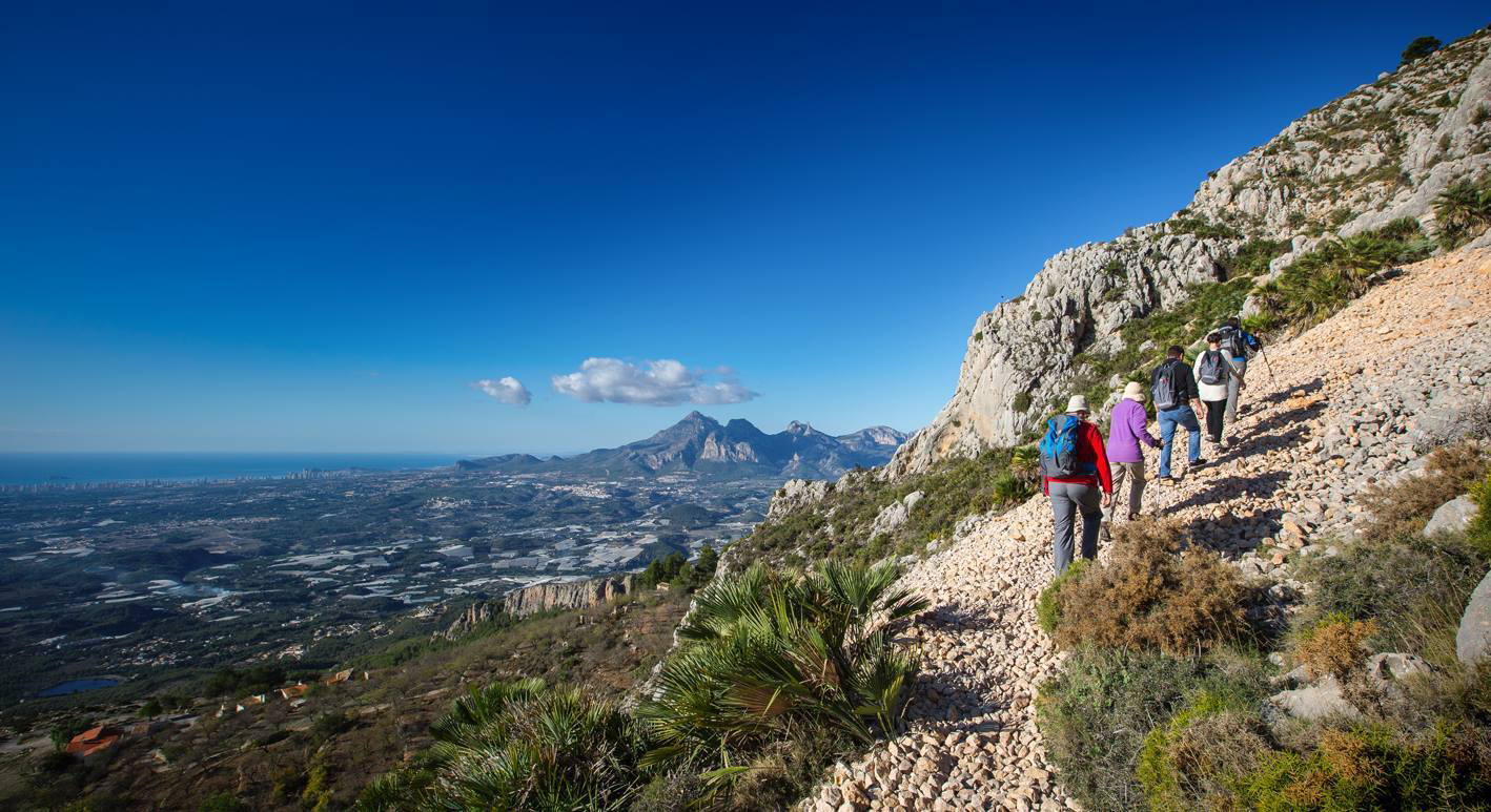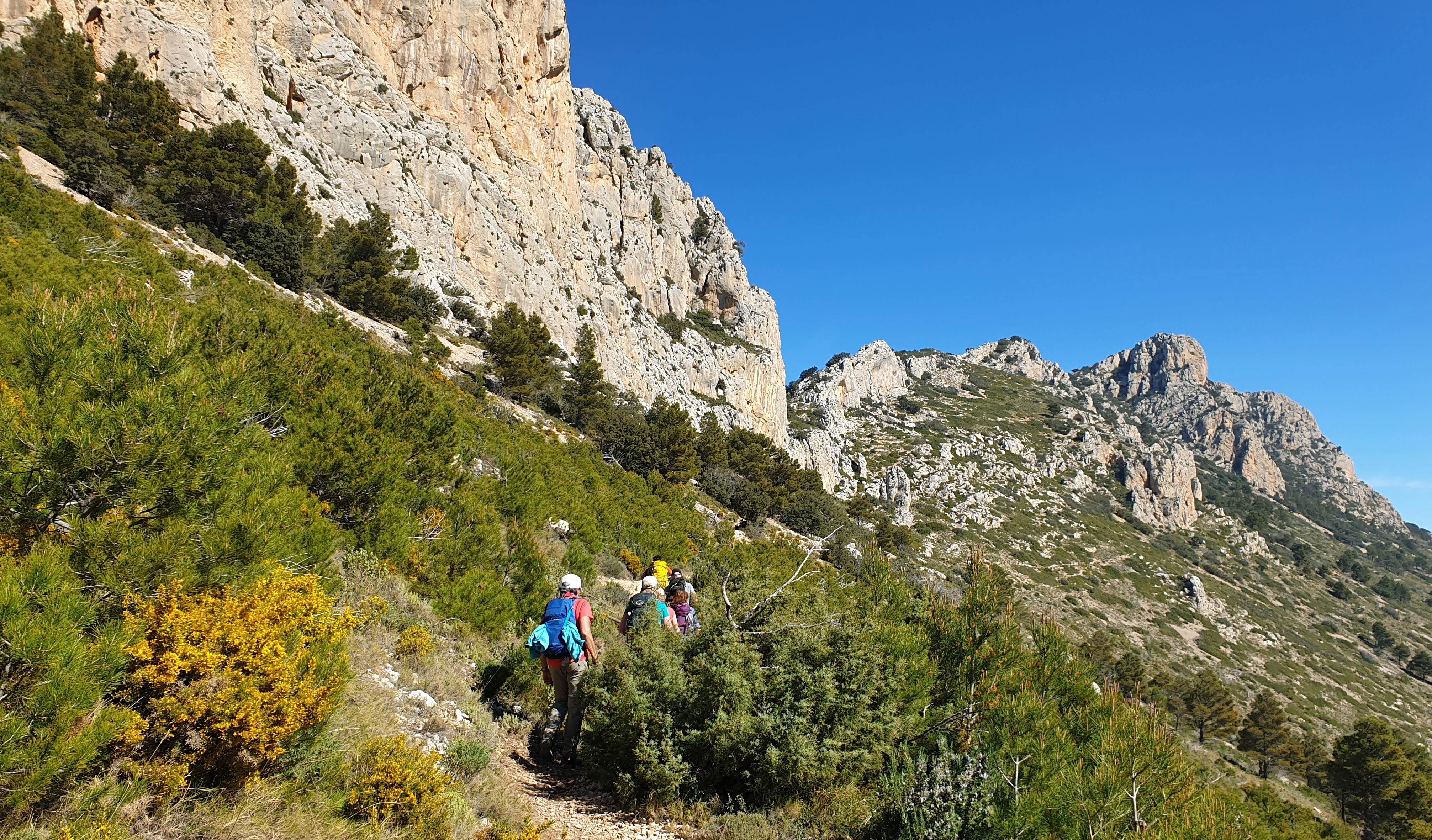 Strax norr om Altea reser sig en spetsig bergsrygg som kallas för Sierra de Bernia. Vi får skjuts en bit upp på bergets nordliga sluttning där vi börjar en av veckans allra vackraste vandringar. Vi tar oss runt berget och njuter av mäktig natur, med distinkta klimatzoner på var sida av berget, samt med fina vyer över Medelhavet och de små vita byarna i dalgångarna. Än idag kommer vi till några partier med ojämnt underlag där man får kämpa lite för att komma upp. Gillar man vandringar med lite extra krydda är Sierra de Bernia verkligen något för dig. Observera att idag måste man gå igenom en tunnel.Tunneln är totalt ungefär tio meter lång, varav de tre första metrarna får man krypa innan passagen bli tillräckligt högt att stå igen. Precis som alla dagar ser vår färdledare och guide till att det blir lagom med pauser för snacks, vatten och fotografering. Och vi håller ett lugnt tempo så att alla kan känna sig bekväma - vi har inte bråttom då vi har hela dagen på oss för att vandra 13 km.