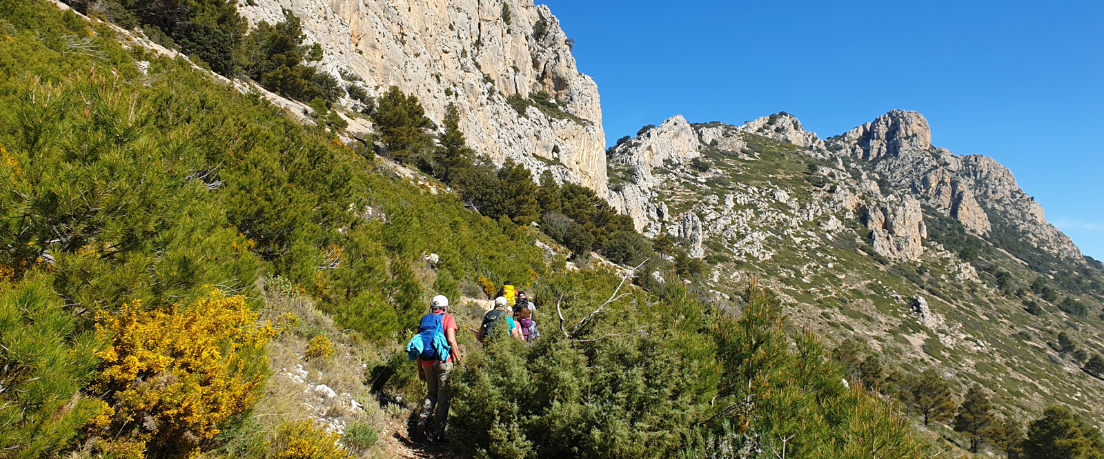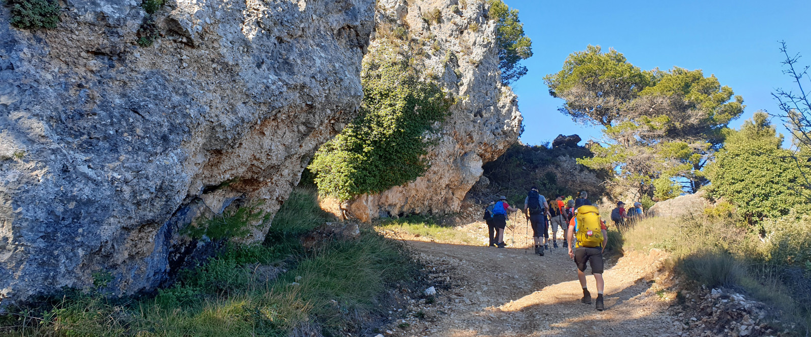 Strax norr om Altea reser sig en spetsig bergsrygg som kallas för Sierra de Bernia. Vi får skjuts en bit upp på bergets nordliga sluttning där vi börjar en av veckans allra vackraste vandringar. Vi tar oss runt berget och njuter av mäktig natur, med distinkta klimatzoner på var sida av berget, samt med fina vyer över Medelhavet och de små vita byarna i dalgångarna. Än idag kommer vi till några partier med ojämnt underlag där man får kämpa lite för att komma upp. Gillar man vandringar med lite extra krydda är Sierra de Bernia verkligen något för dig. Observera att idag måste man gå igenom en tunnel.Tunneln är totalt ungefär tio meter lång, varav de tre första metrarna får man krypa innan passagen bli tillräckligt högt att stå igen. Precis som alla dagar ser vår färdledare och guide till att det blir lagom med pauser för snacks, vatten och fotografering. Och vi håller ett lugnt tempo så att alla kan känna sig bekväma - vi har inte bråttom då vi har hela dagen på oss för att vandra 13 km.