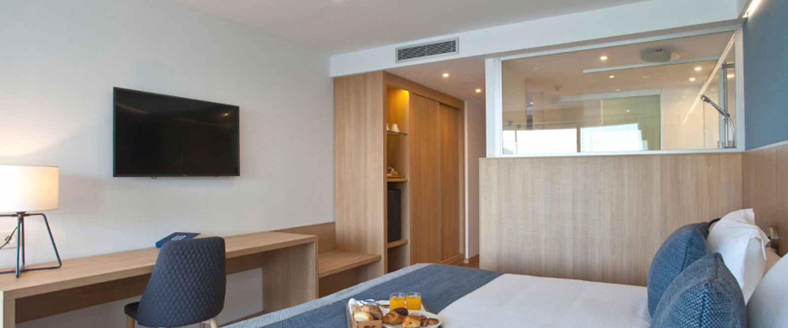 Man kan välja rum antigen med utsikt mot inlandets natur eller mot poolen och Medelhavet (mot tillägg). Rummen är modernt inredda med frostat glas i badrummen, samt öppet och ljust. Havet och den fina vita sandstranden Santo Tomás ligger bara 250 meter bort.