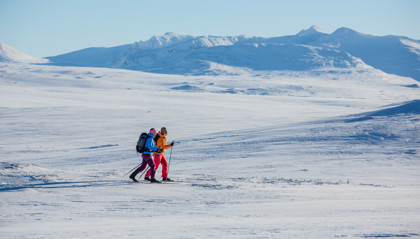 Turskidåkning i underbara Jämtlandsfjällen. Vi gör dagsturer med en kunnig guide och bor bekvämt på STF Storulvån Fjällstation. En klimatsmart resa med nattåg och middagar baserade på lokala och säsongsbaserade råvaror.