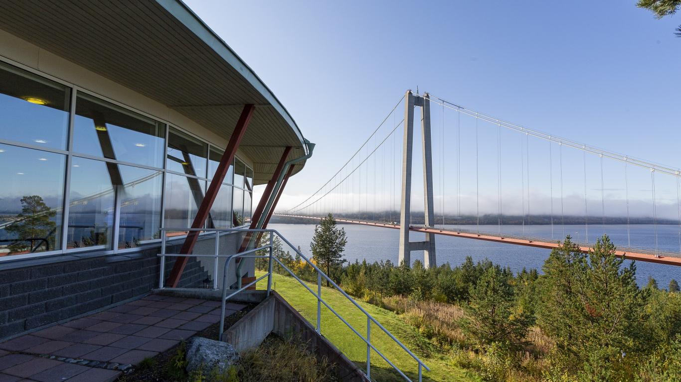 Hotell Höga Kusten ligger vackert beläget vid Högakustenbron, med en fantastisk utsikt över Ångermanälven. Hotellet är också Sveriges första hotell som får all sin el från vindkraft.
