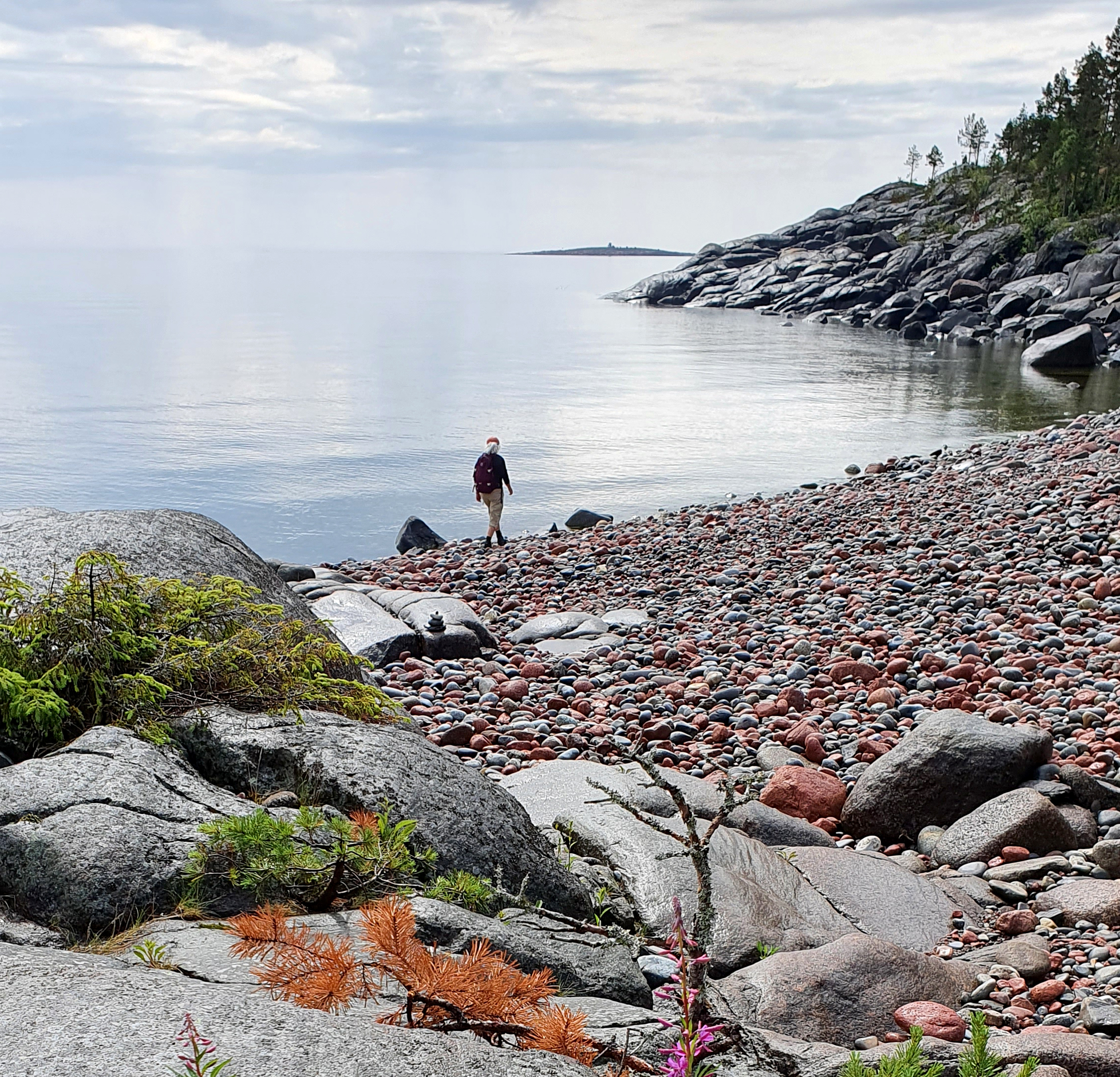 Från hamnen vandrar vi olika stigar till öns vikar och stränder. När vi vandrar längs ön stränder ser vi både röda, grå, vita och svarta stenar i vacker palett. På ön växer backtimjan, fjällnejlika, låsbräken, strandtrav och nattviol. Runt öarna häckar många sjöfågelarter, bl a ejder, tobisgrissla, svärta och fiskmås.
