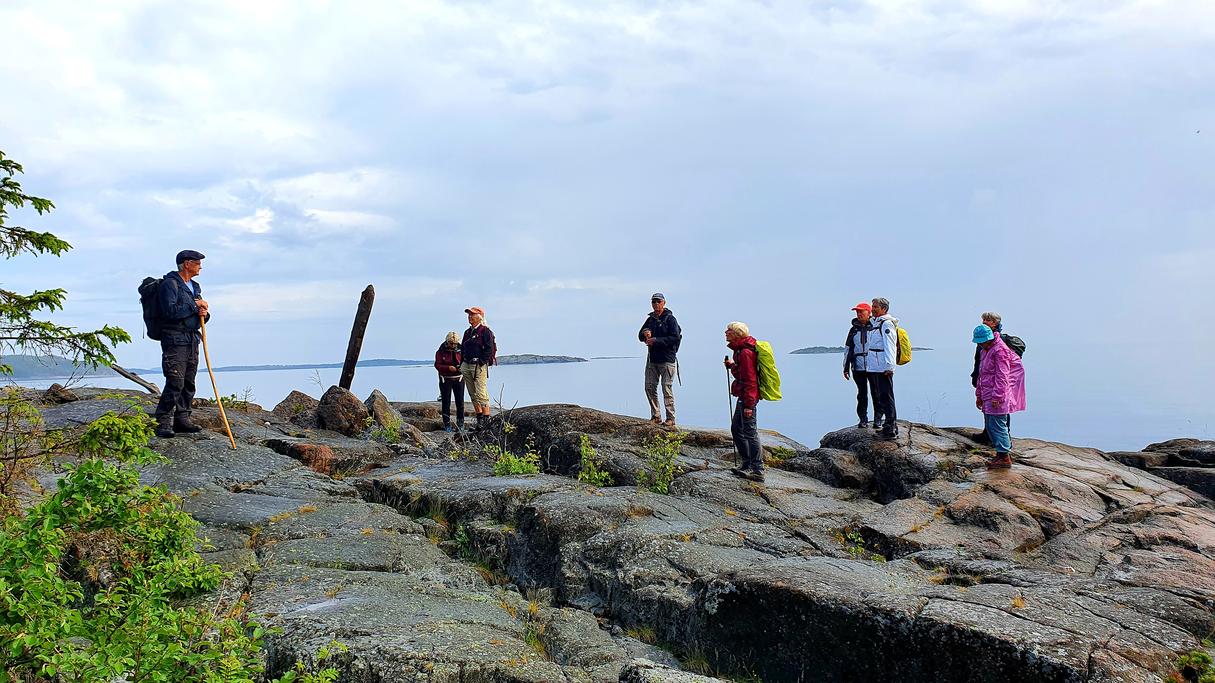 Dagens vandring bjuder på ett varierat landskap i den yttre skärgården. Det är lättgångna stigar och vägar och bara mindre höjdskillnader. Vi besöker bl a Sörbyn, som tillsammans med Norrbyn uppstod under 1500- och 1600-tal och som idag är två idylliska byar ute i skärgården. Vår rundvandring tar oss på skogsstigar, på mindre kärrvägar och en kortare sträcka på byväg. Vi vandrar förbi två sjöar, ner till en fin havsvik och upp på ett utsiktsberg. På tillbakavägen vandrar vi också gå upp på Lotsberget.