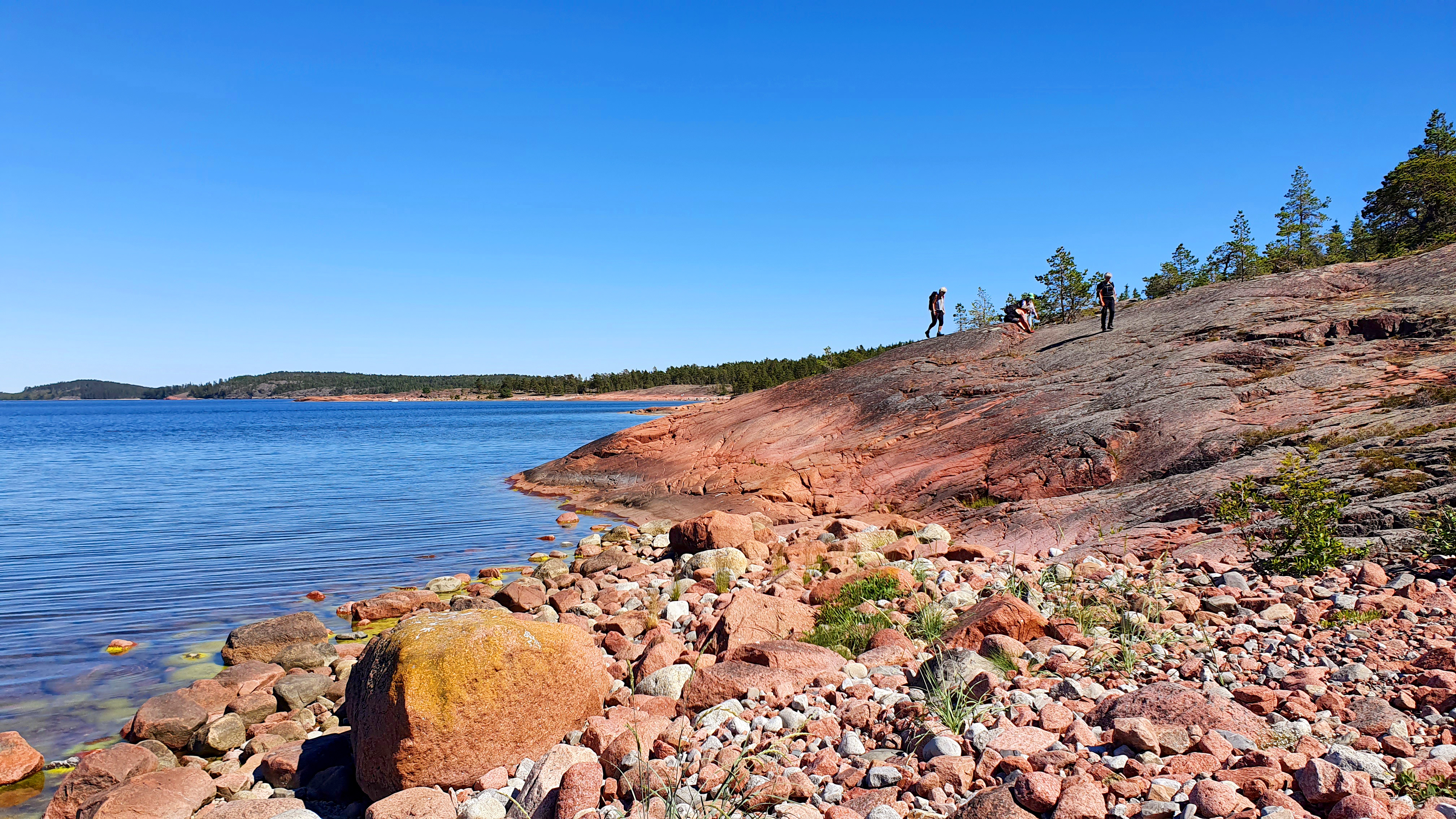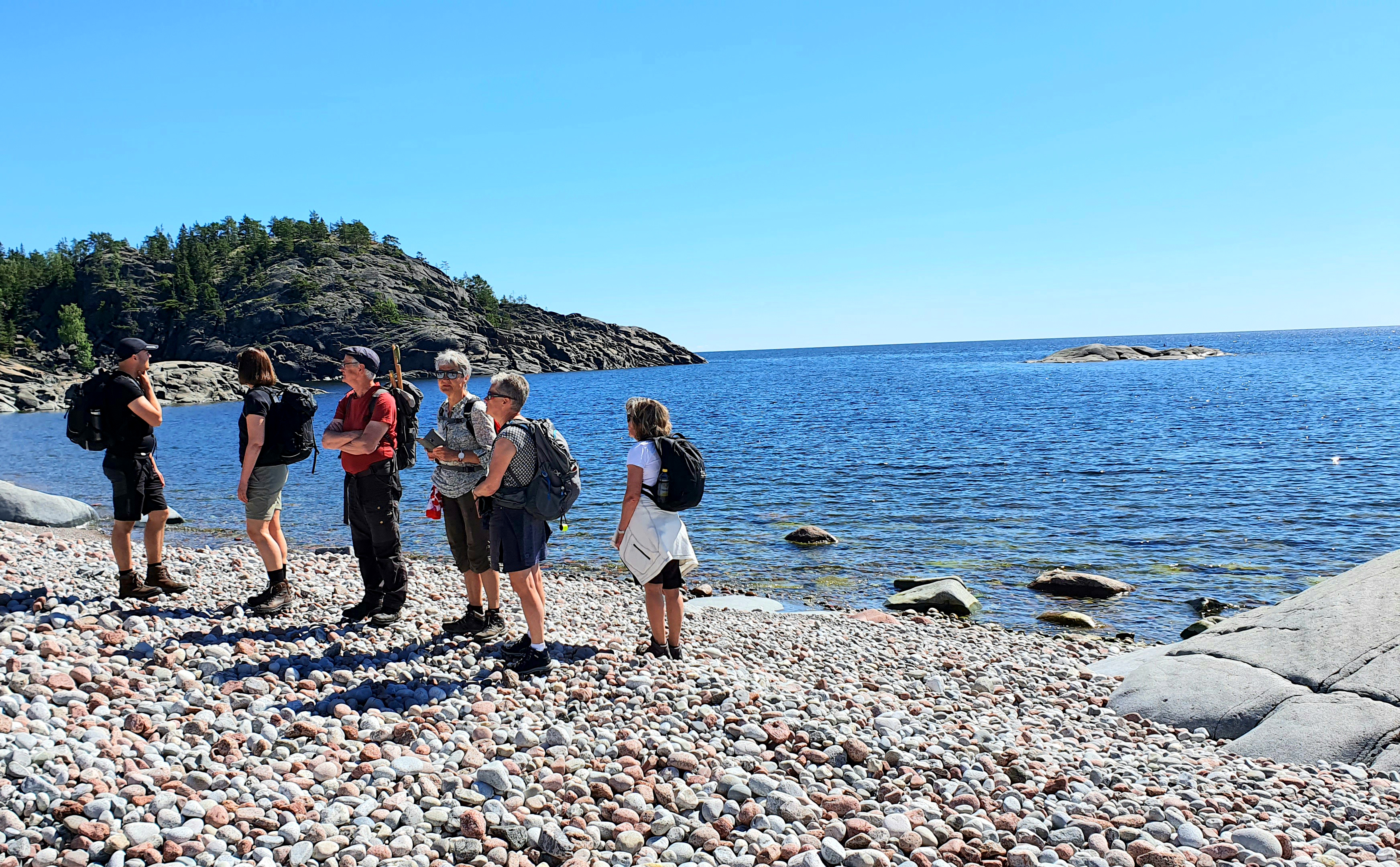 Vi besöker, förutom själva hamnen, mycket säregna vikar som Björnviken vilken inbjuder till bad vid fint väder. Därtill har vi Storviken med sina rundslipade färggranna stenar, Rödskaten och Bockviken. Uppe på Flaggstångsberget får vi en fin utsikt över hamnen och hamninloppet och uppe på Kapellsberget har vi en vacker utsikt över ön och skärgården. På vandringen ute på Hamnskaten går vi på slipade klippor och ser prominenta klippformationer. Lite kortare vandring denna dag, men som bjuder på både båttur och vandring i varierat landskap med vyer.