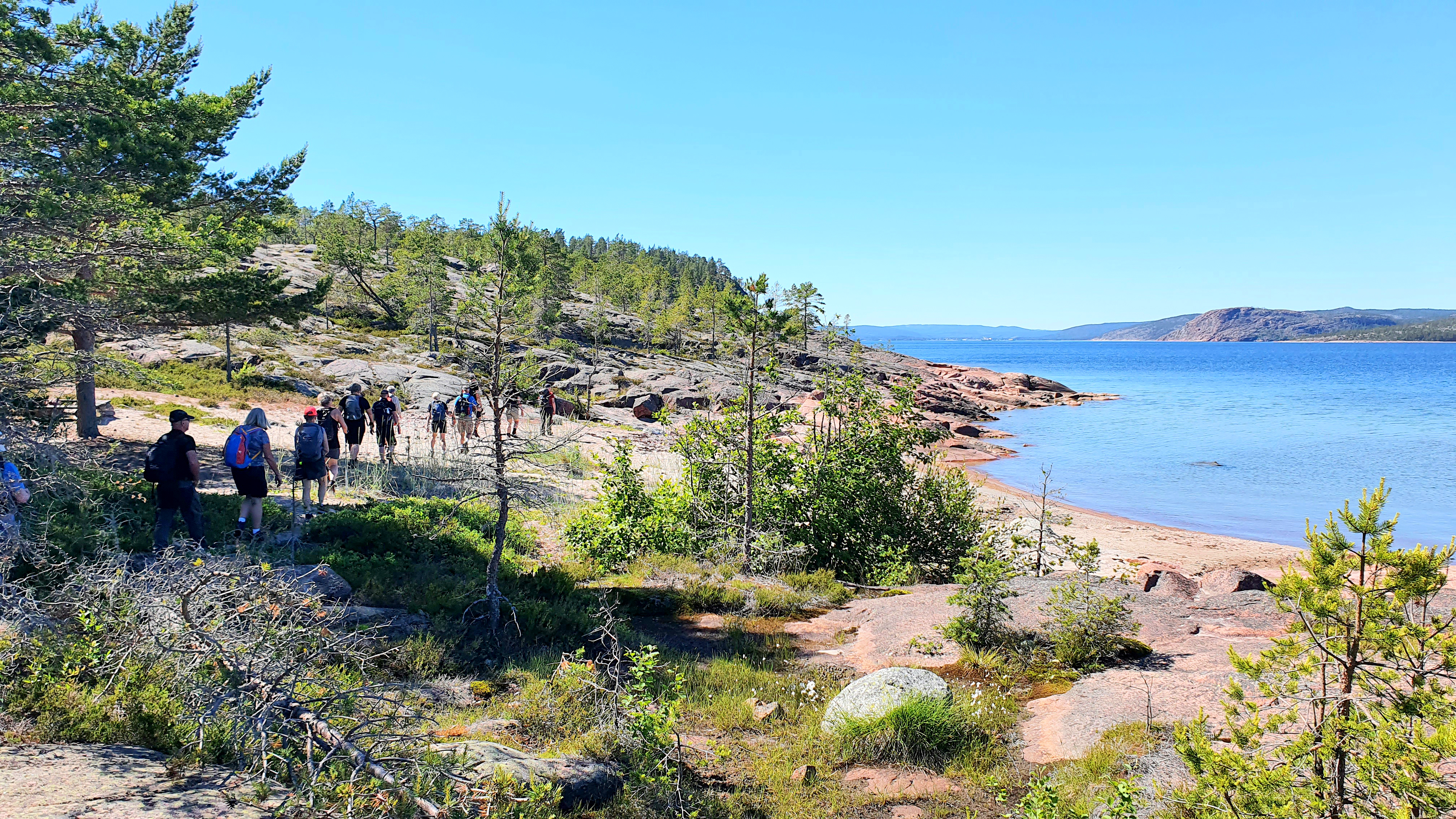 Dagens etapp bjuder på vandring genom skog och berg och vi får vi se spår av landhöjningen och klapperfält samt strandvallar som formats efter forna tiders istid. Dessutom vandrar vi genom en gammelskog med ovanliga arter som långskägg, jättepraktbagge och gråspett. Vår guide Bengt berättar gärna om nationalparkens natur och historia samt om världsarvet Höga Kusten. Kanske blir det en och annan historia om de troll och de jättar som levde i dessa skogar. Dessa drog sig enligt sägen så småningom tillbaka under skrevor och rötter, bortom de levande. Inte att förglömma rövarna i Skuleskogen, som sägs har funnits här i äldre dagar.