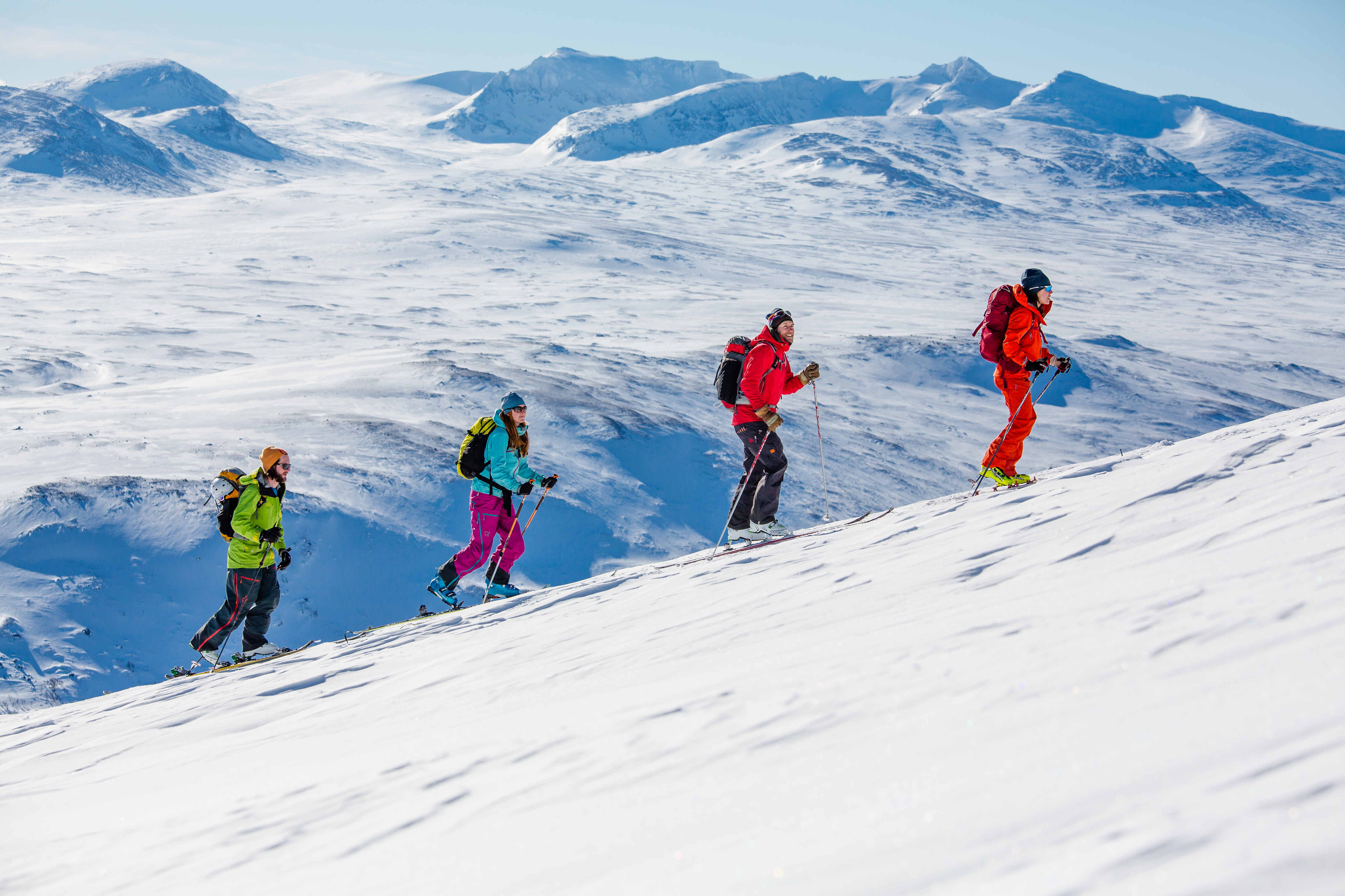 Vädret kan slå om snabbt och det är därför viktigt att vara rustad för det. I allmänhet gäller det att ha funktionella kläder för alla väder och ett par ombyten. Turskidor inkl stavar, pjäxor och stighudar ingår. En rekommendation är att ta med två termosar, en för varm dryck och en mattermos. Lista på övrig utrustning som vi rekommenderar mejlas ut närmare avresan.
