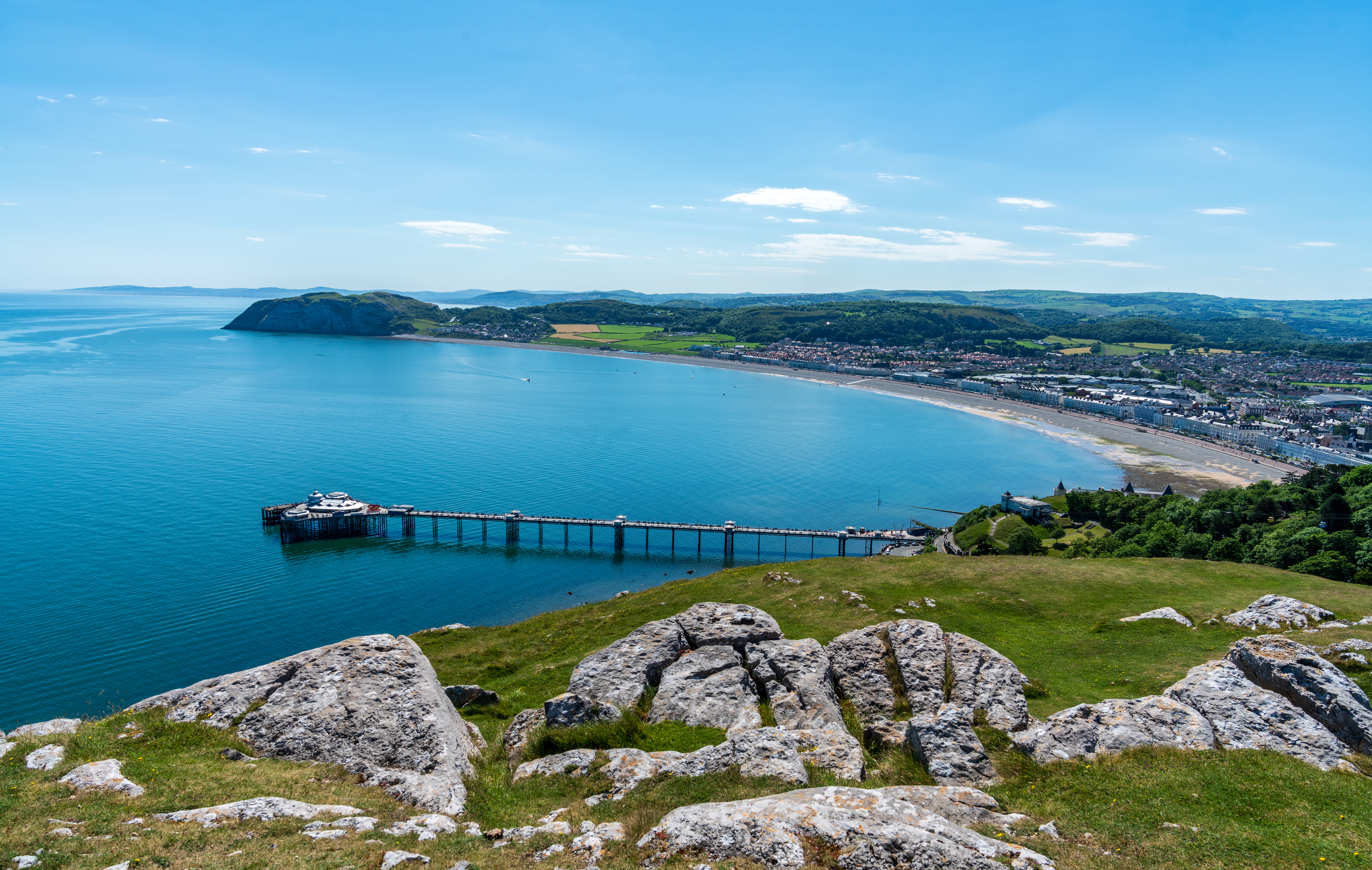 Llandudno är en av Wales charmigaste kuststäder, vackert belägen mellan havet och de mäktiga kalkstensklipporna Great Orme med sina dramatiska vyer. Staden bjuder på en elegant atmosfär med sina klassiska viktorianska hotell, sin breda strandpromenad och den långa piren som sträcker sig ut i Irländska Sjön. Staden är ett populärt resmål på sommaren med sina små butiker, restauranger samt caféer och läget är perfekt som utgångspunkt för våra vandringar.